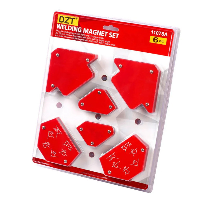 Магнитные угольники для сварки, 6 шт, красный, с ферритовым магнитом