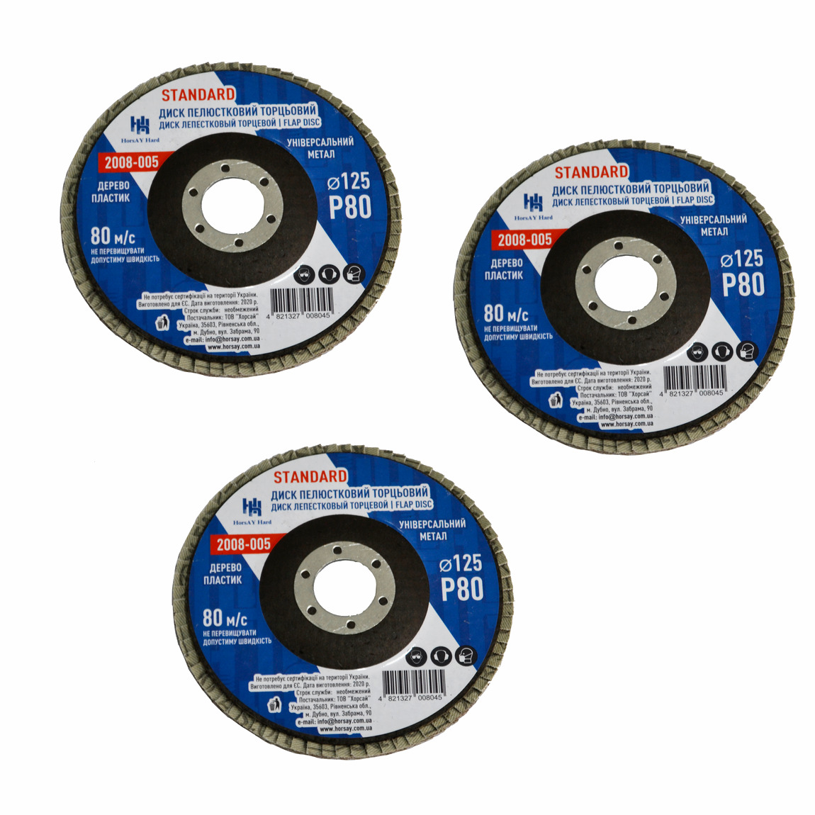 Комплект (3 шт) Диск лепестковый, торцевой конический, 125 х 22,2 мм, Р80