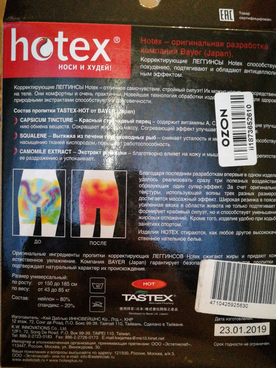 Легинсы для похудения Hotex корректирующие с косметической пропиткой