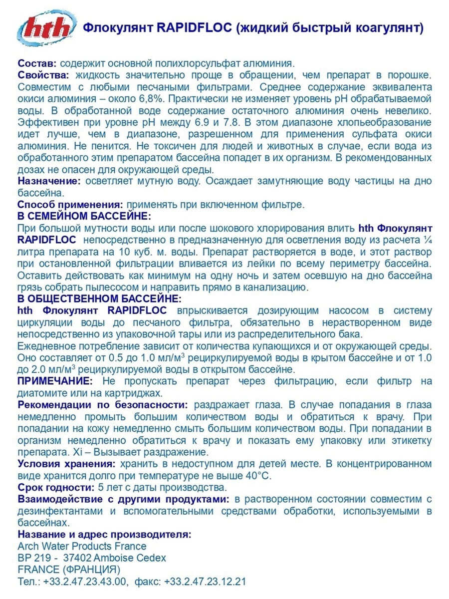 Коагулянт жидкий быстрого действия hth RAPIDFLOC (Франция) 1,0 л.