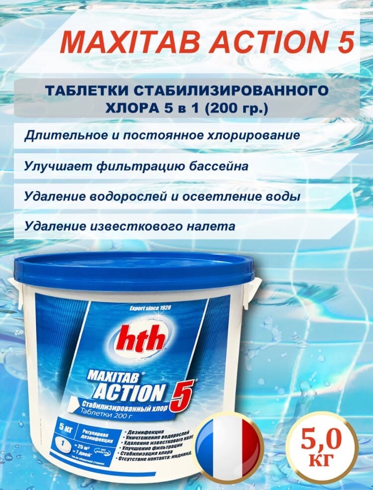 Стабилизированный хлор MAXITAB ACTION 5 в 1 таблетки 200гр., 5кг/HTH
