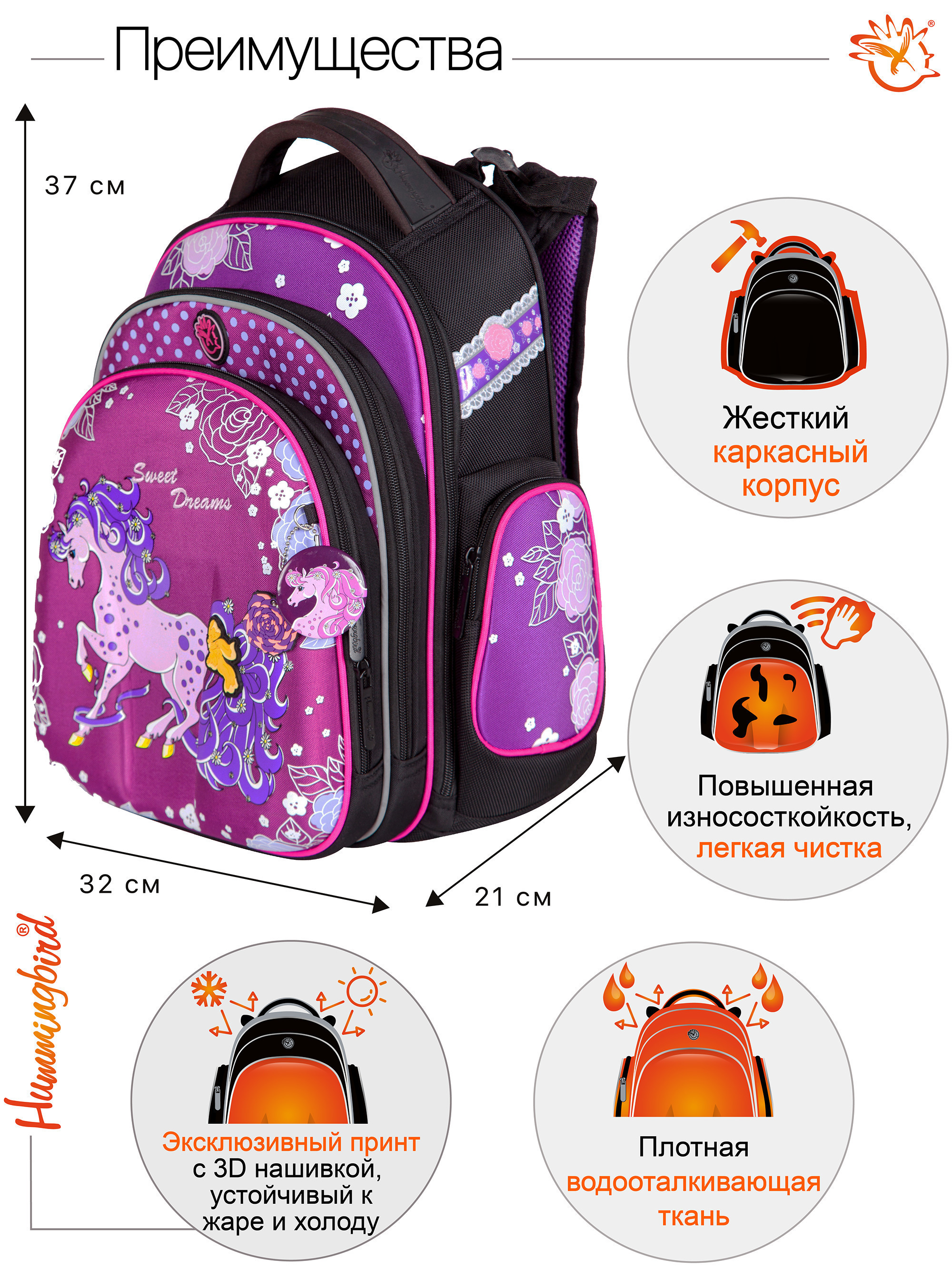 Школьный рюкзак Hummingbird для девочек T37 c ортопедической спинкой