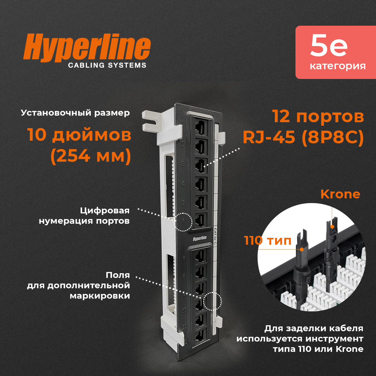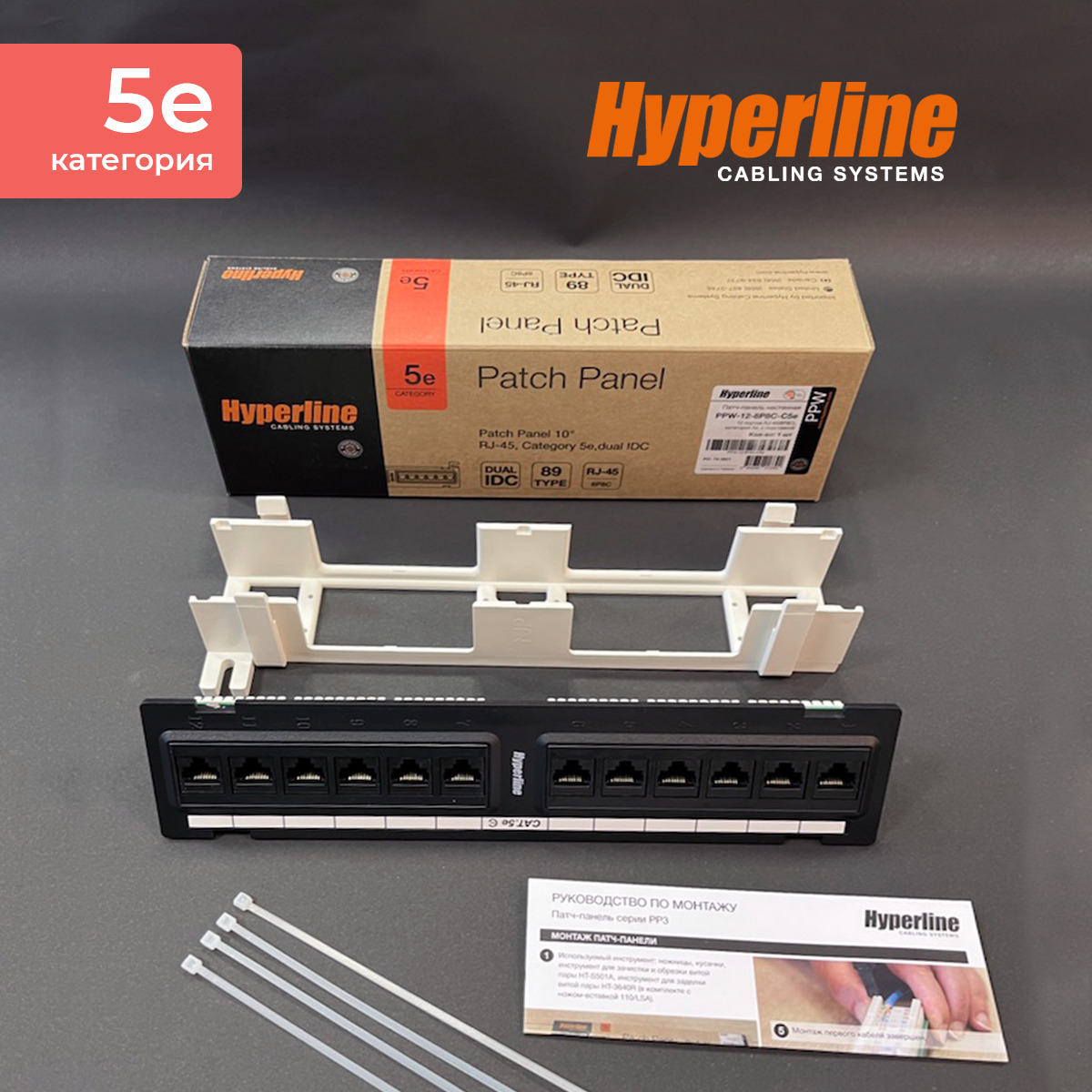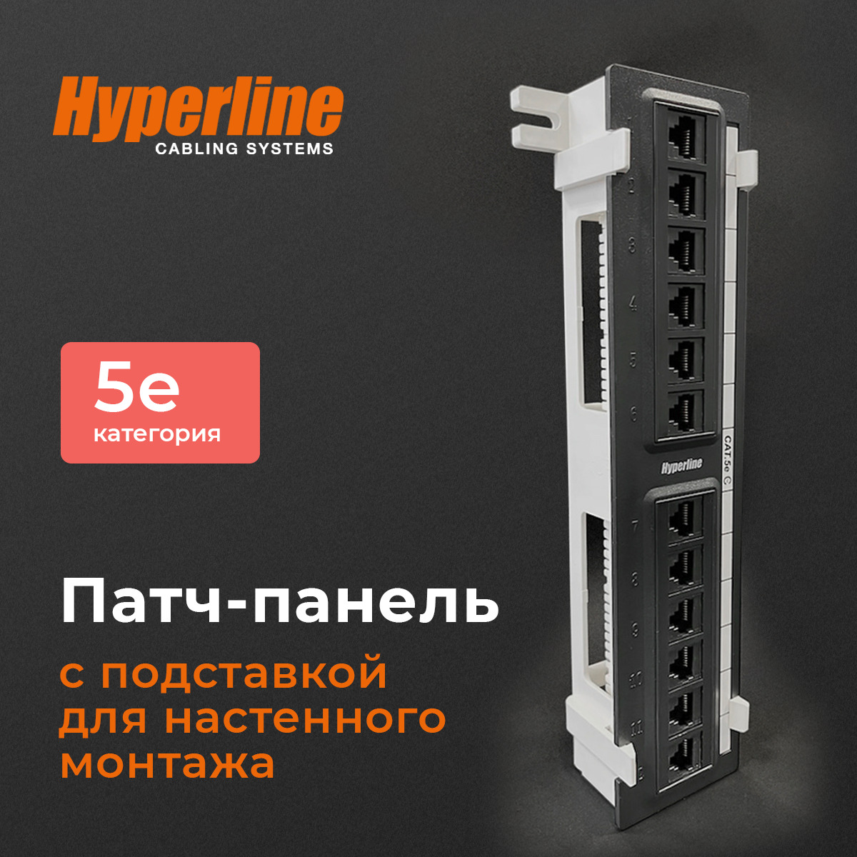 Патч-панель настенная Hyperline, 12 портов RJ-45(8P8C), категория 5е, с подставкой