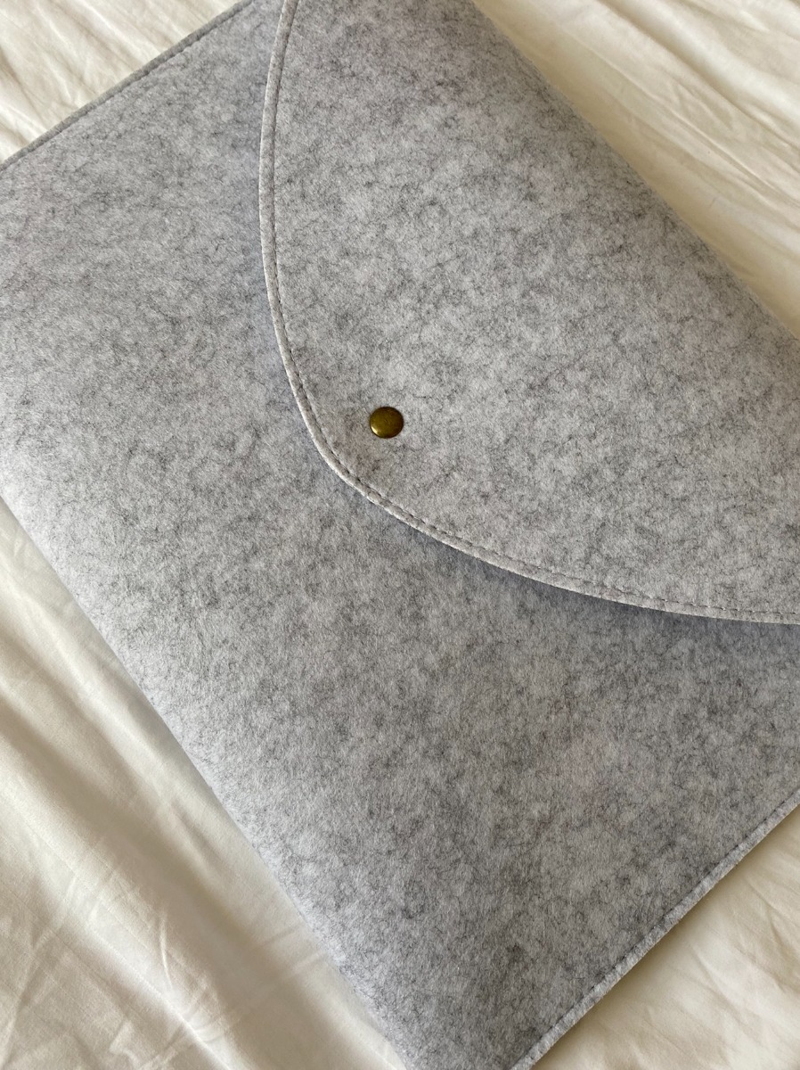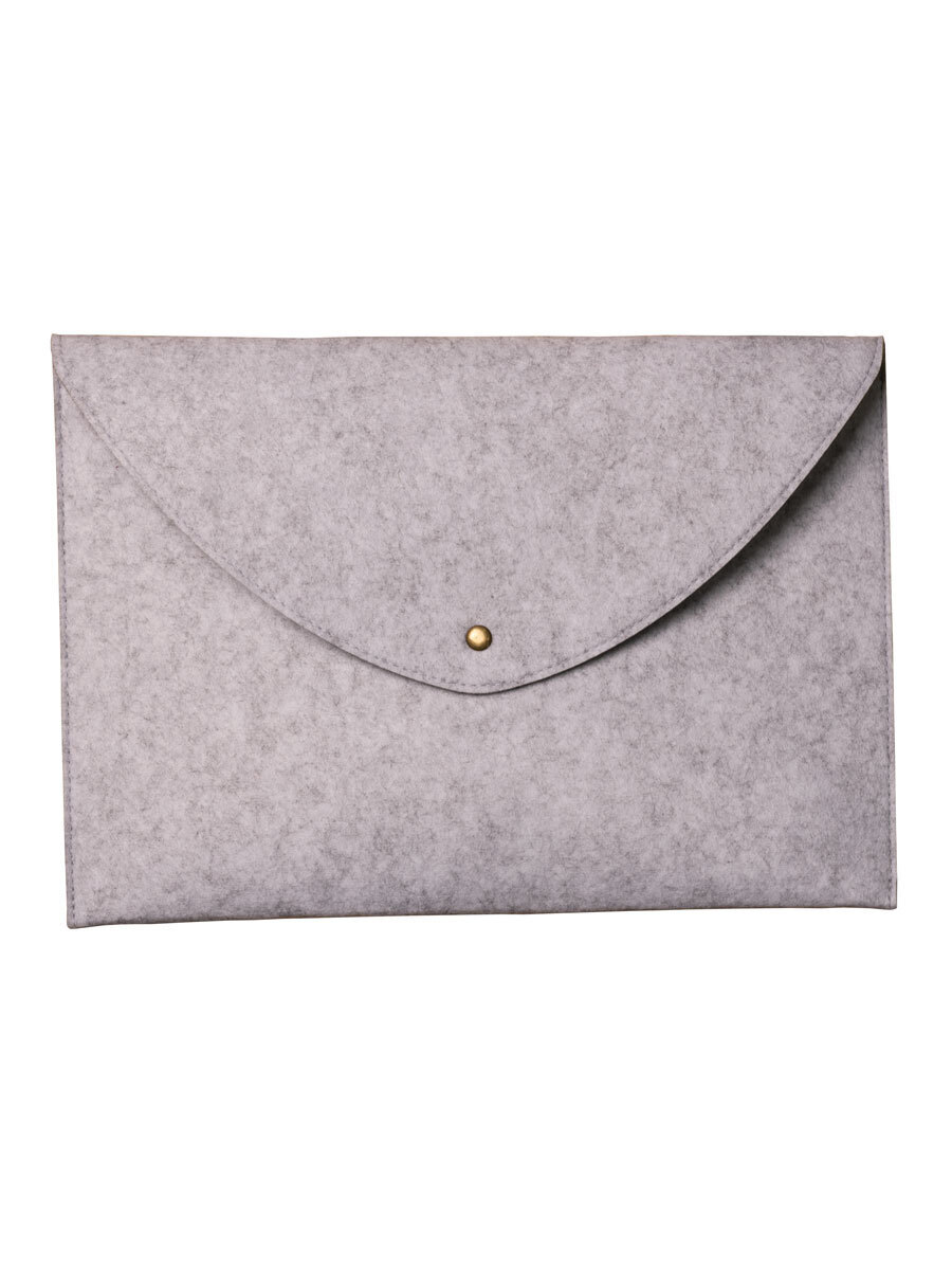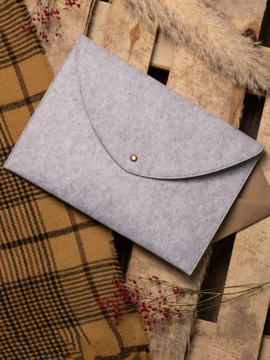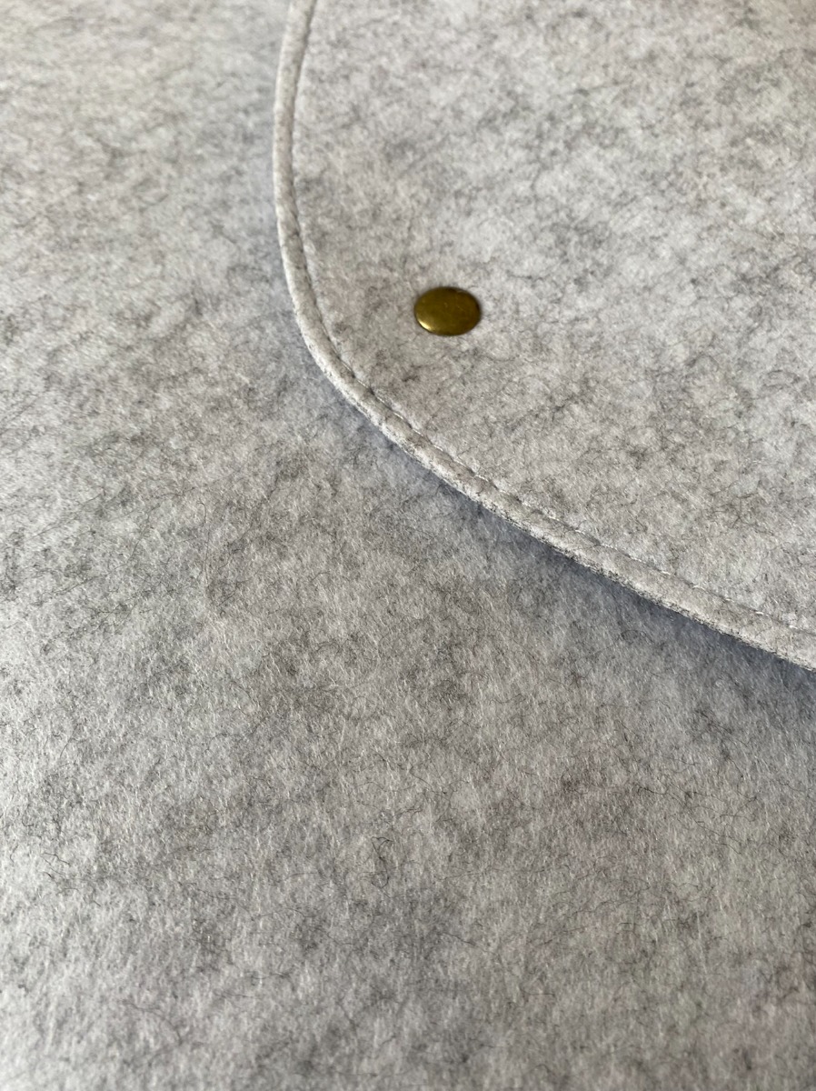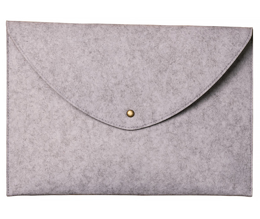 Фетровый чехол-конверт на кнопке для Apple Macbook Pro 16, Macbook Pro 15 2016 - 2018, вмещает формат А4, влагозащитный, цвет: светло-серый
