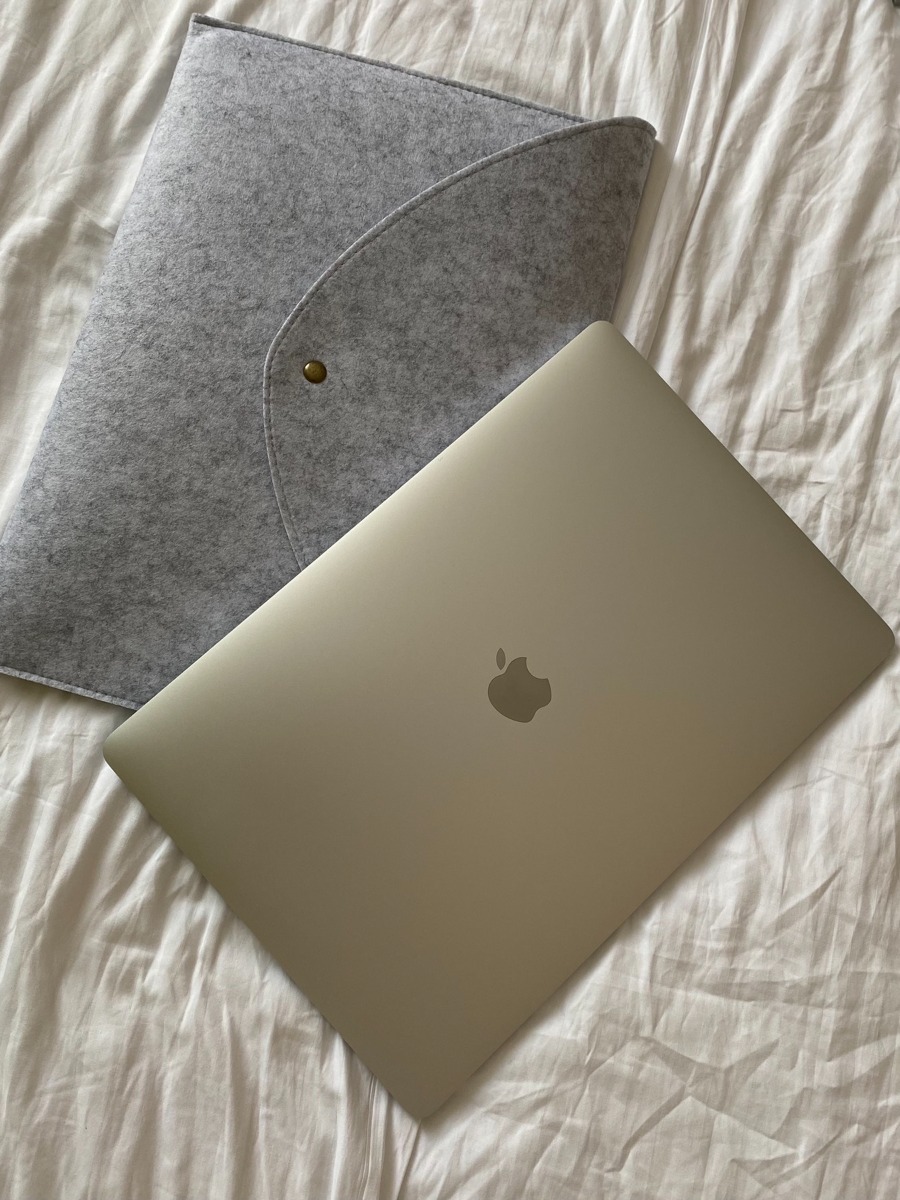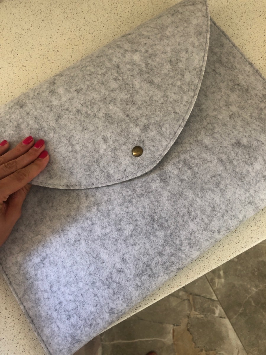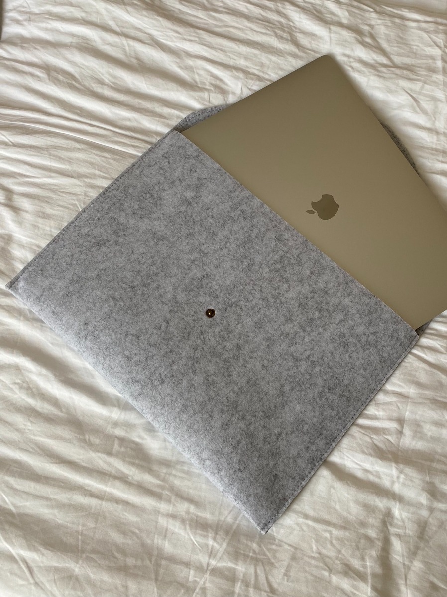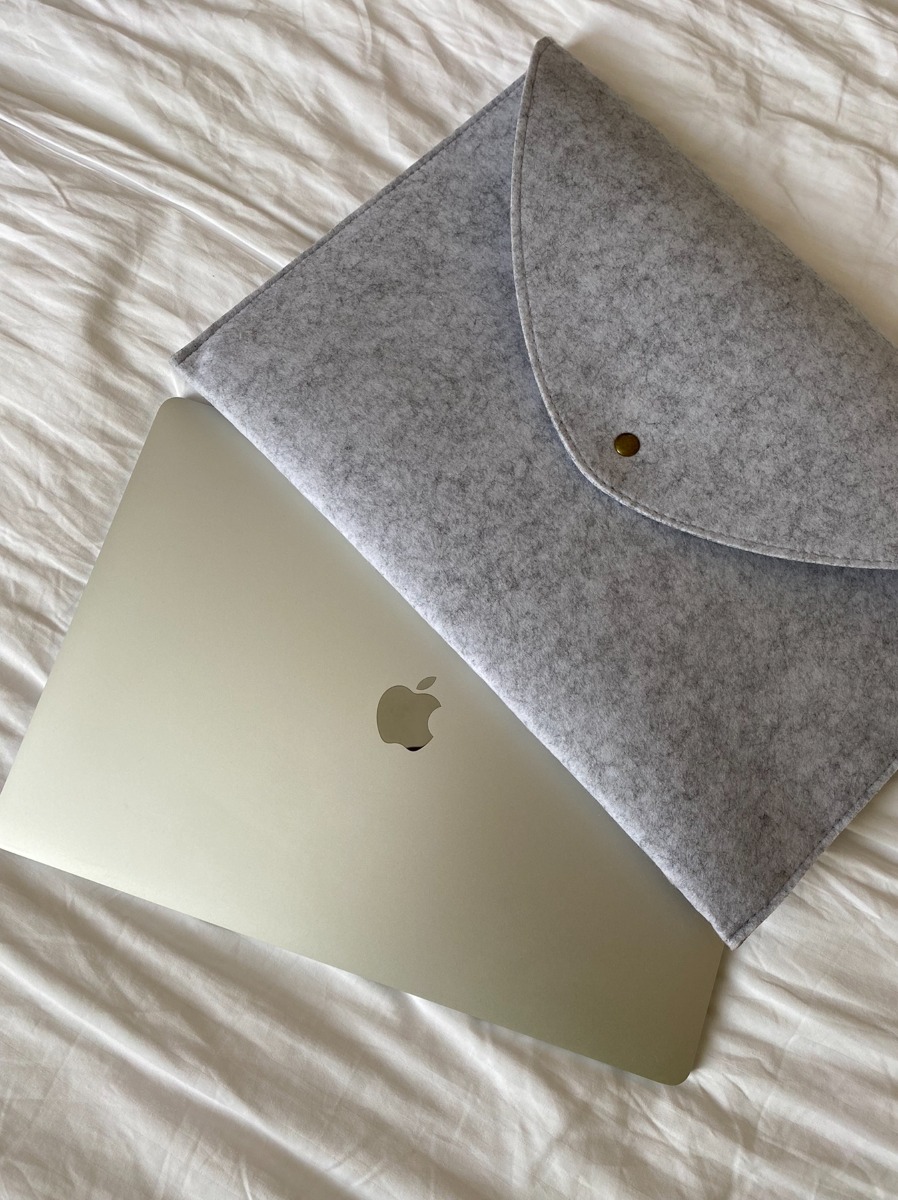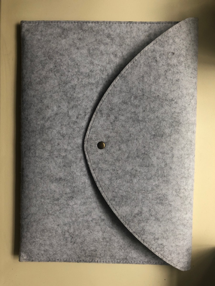 Фетровый чехол-конверт на кнопке для Apple Macbook Pro 16, Macbook Pro 15 2016 - 2018, вмещает формат А4, влагозащитный, цвет: светло-серый