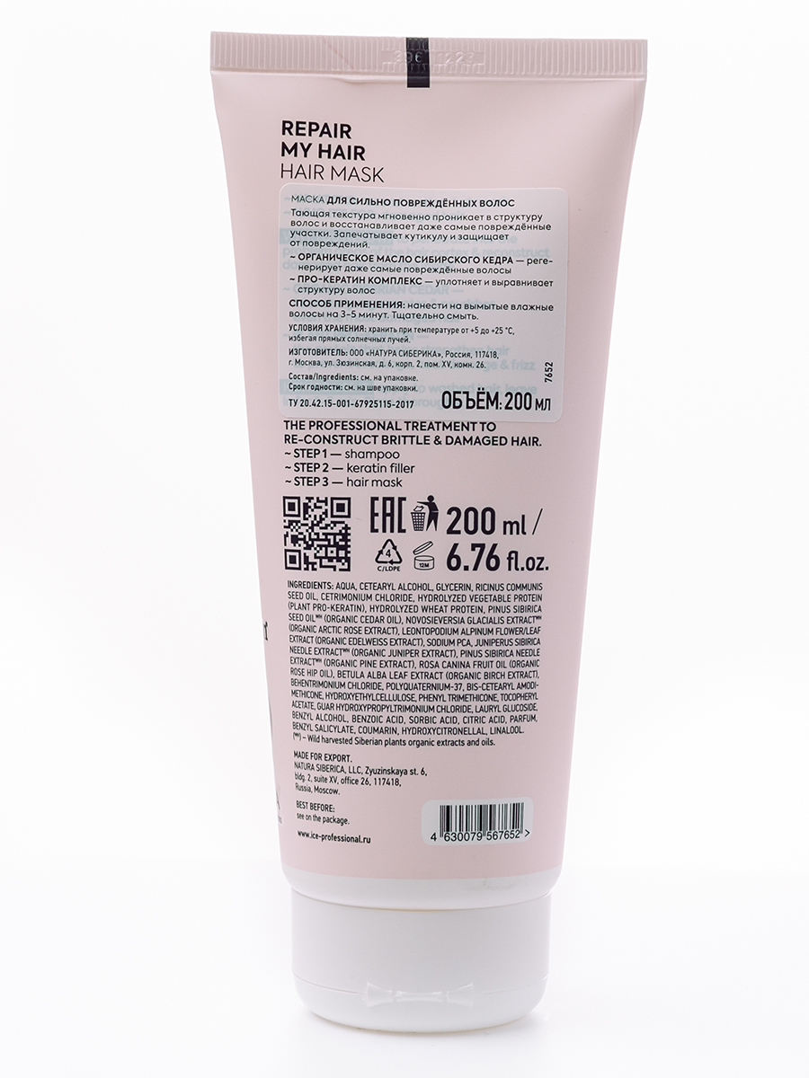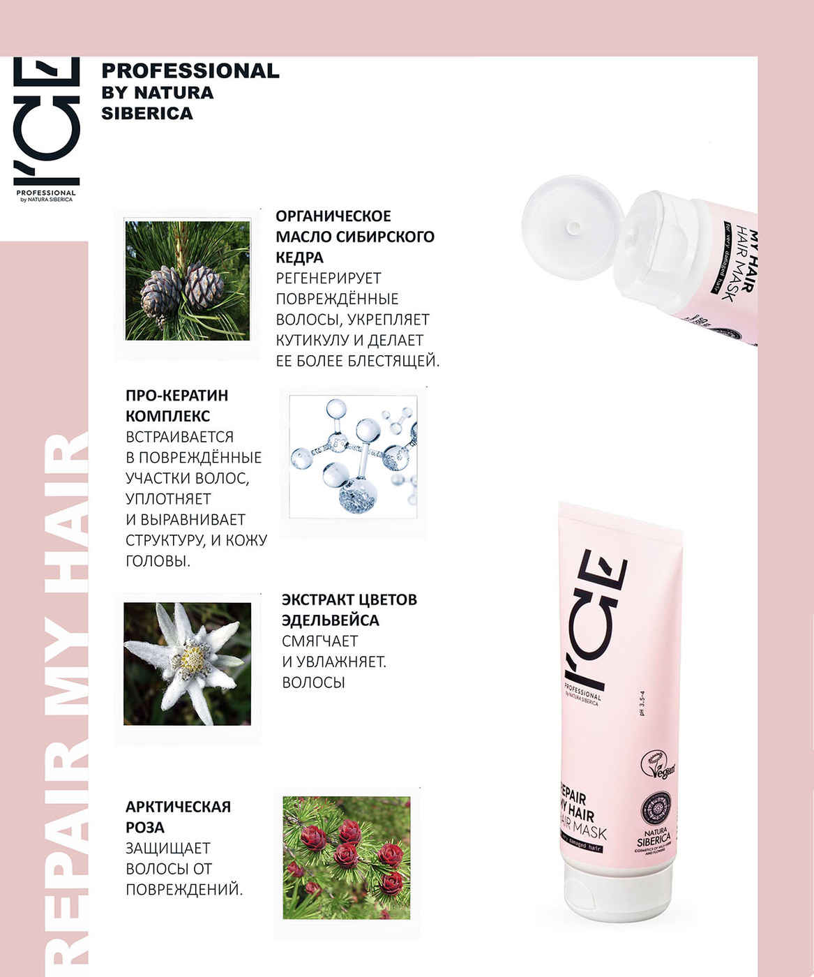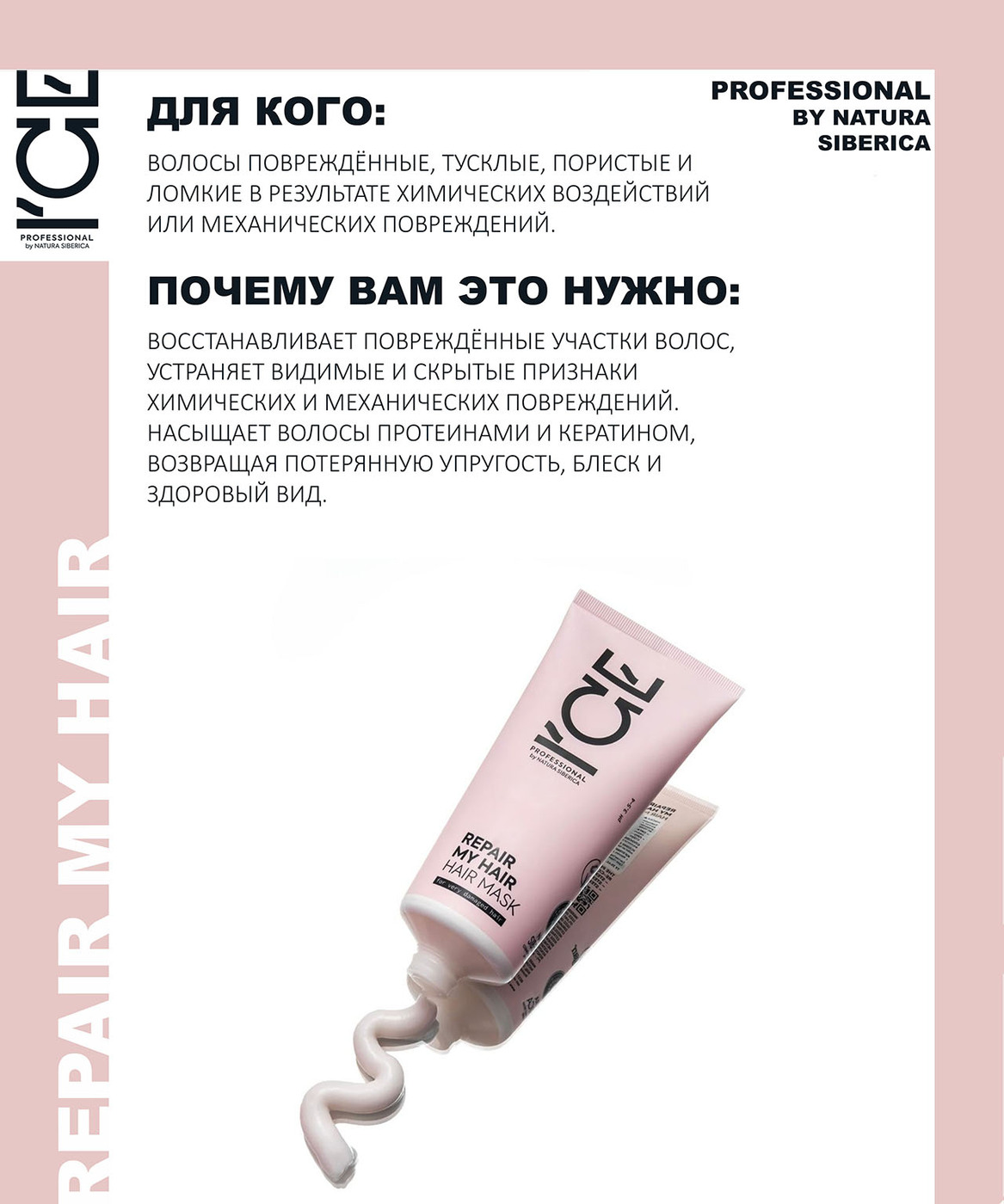 Маска ICE PROFESSIONAL by NATURA SIBERICA для сильно повреждённых волос REPAIR MY HAIR MASK, 200 мл