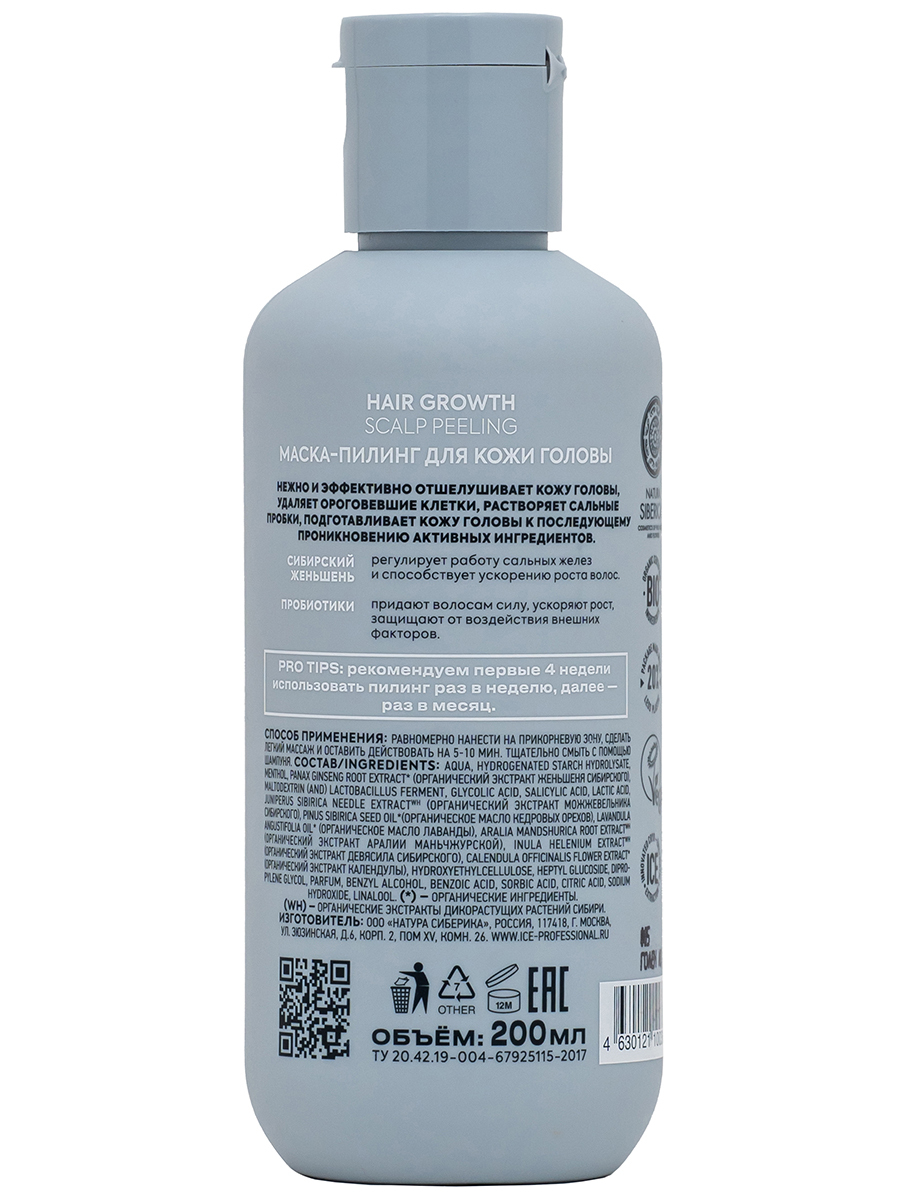 ICE by NATURA SIBERICA take it home Hair Growth Scalp Peeling Маска - пилинг для кожи головы, 200 мл