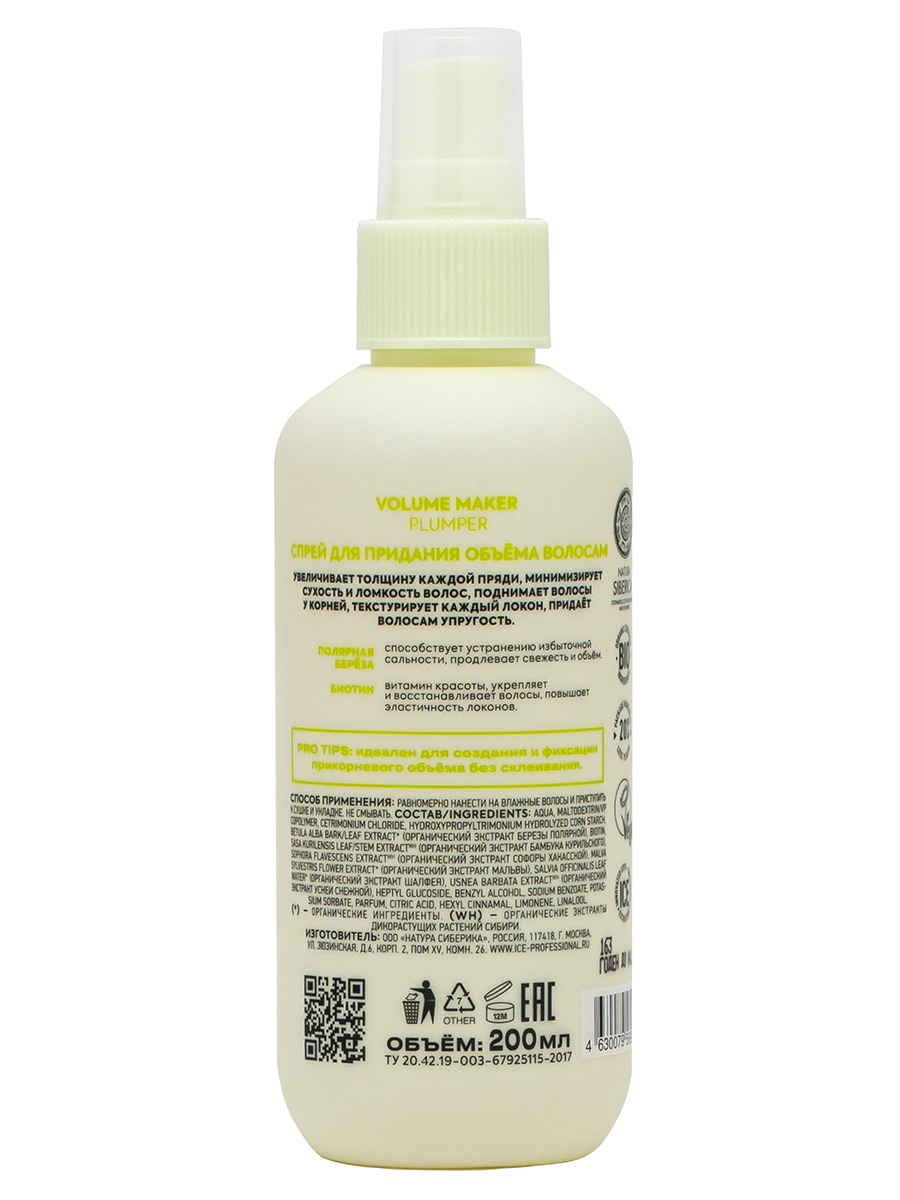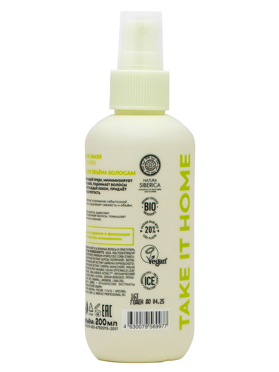 ICE by NATURA SIBERICA take it home Volume Maker Plumper Спрей для придания объёма волосам, 200 мл