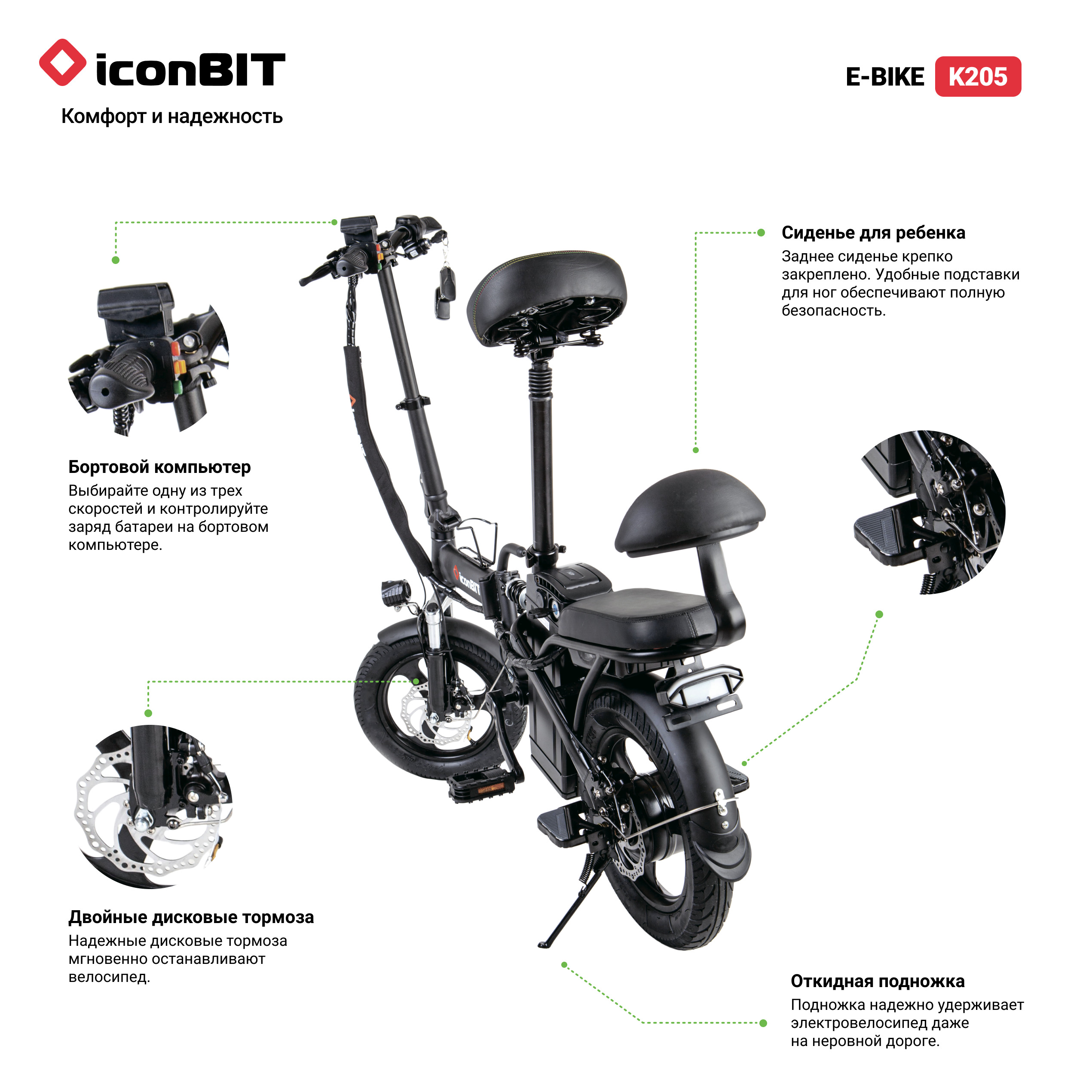 Электровелосипед IconBIT Складной E-Bike K205 (батарея в комплекте), 350 вт