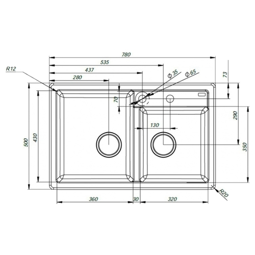 Врезная кухонная мойка IDDIS Vane G V35C782i87