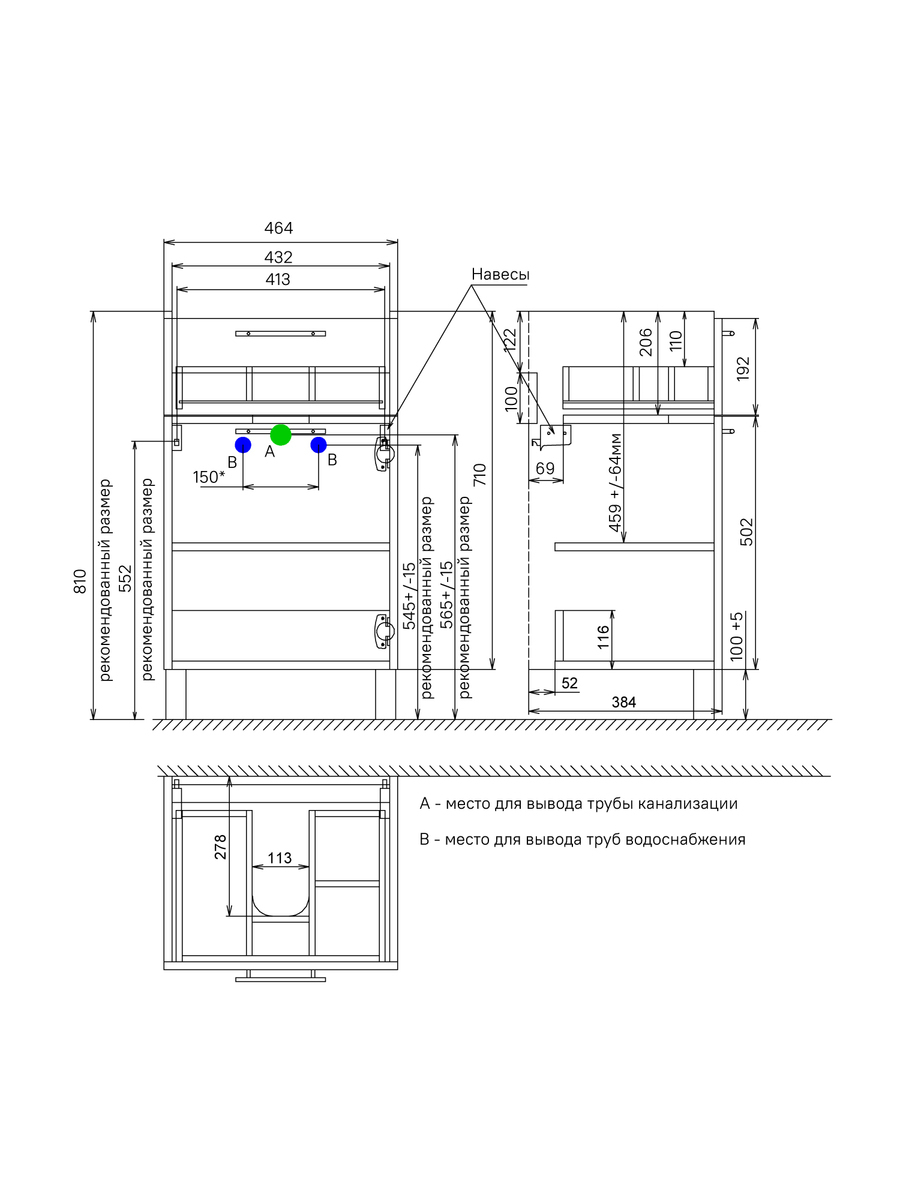 Тумба под раковину IDDIS, 46.4х38.4х81 см, NSE50W1i95