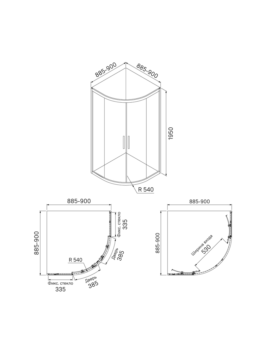 Душевое ограждение, глянцевый ал. проф., 90х90х195, Zodiac, IDDIS, ZOD6CR9i23