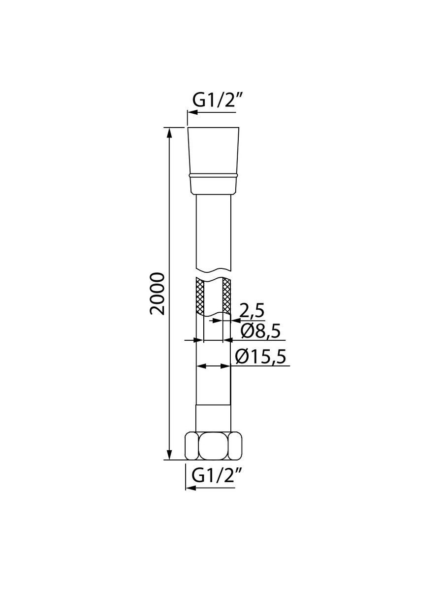 A5071120 Шланг д/душа, ПВХ усилен., 2.0м