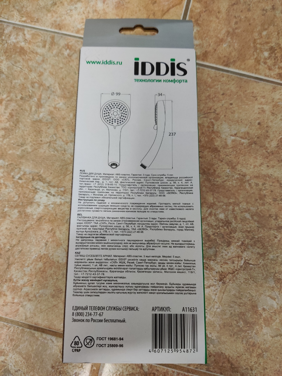 Душевая дверь распашная, глянцевый ал. проф., 80х195, Ray, IDDIS, RAY6CP8i69