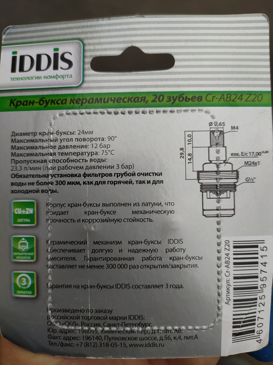 Арматура IDDIS F012400-0005 одноуровневая с боковым подводом воды (тип А)