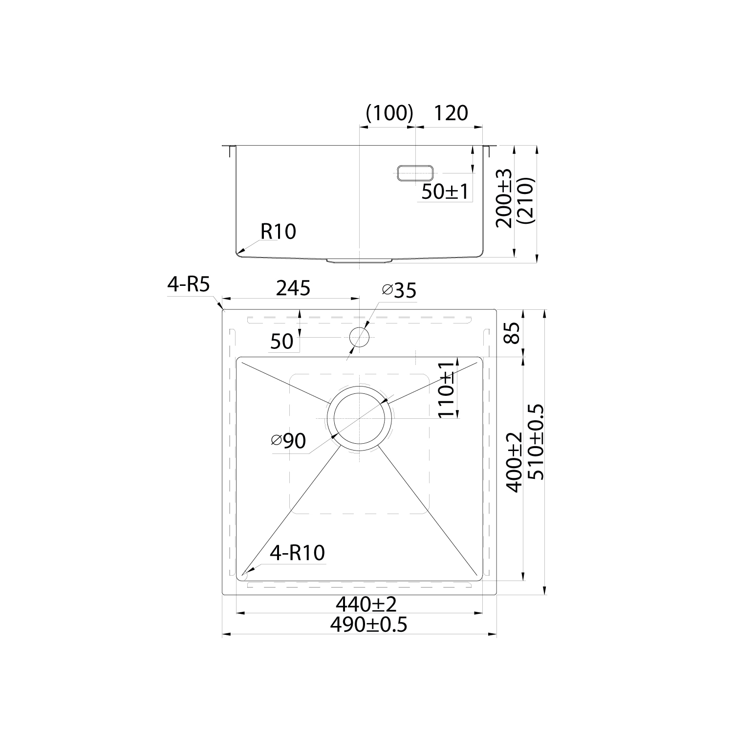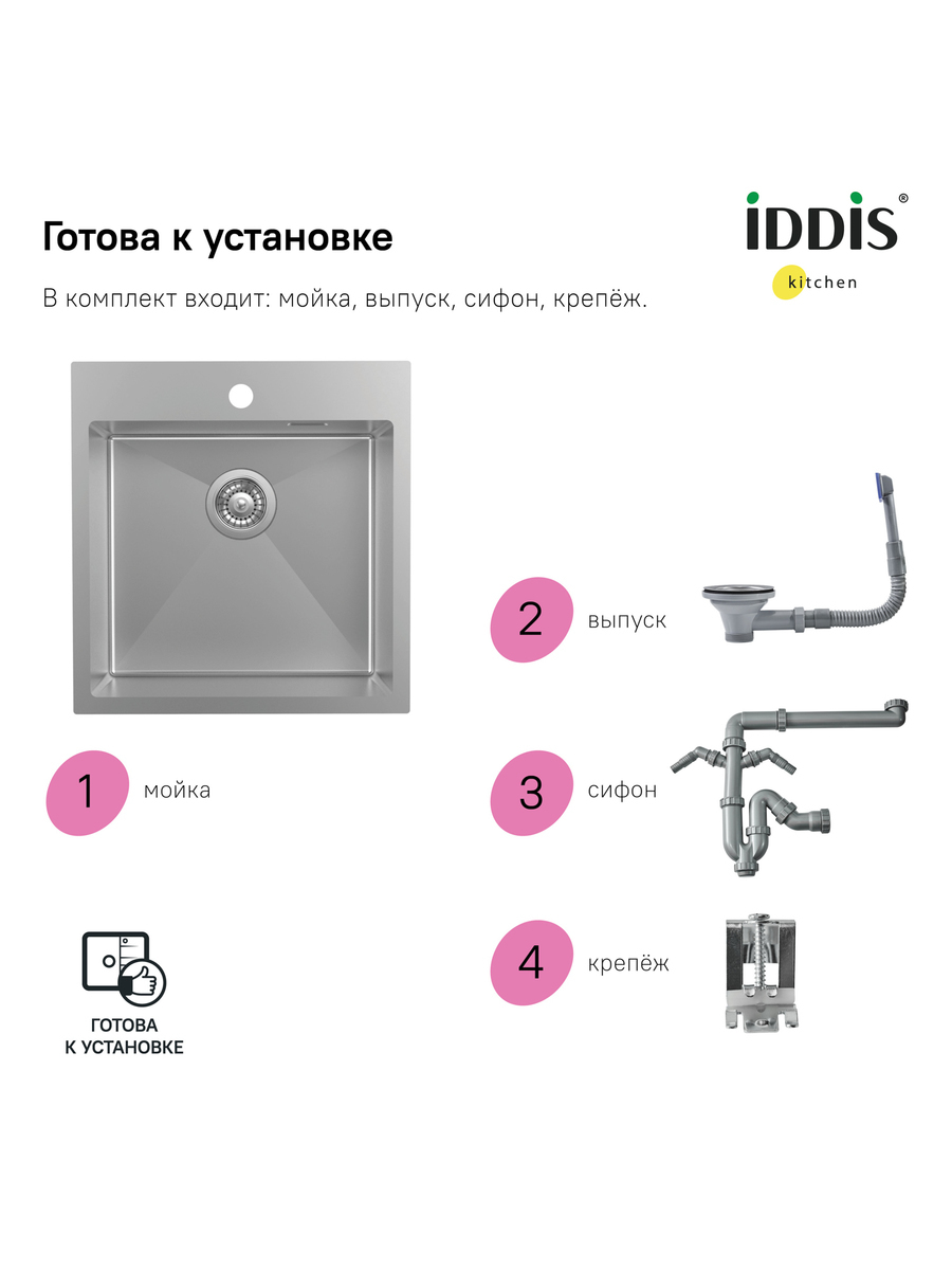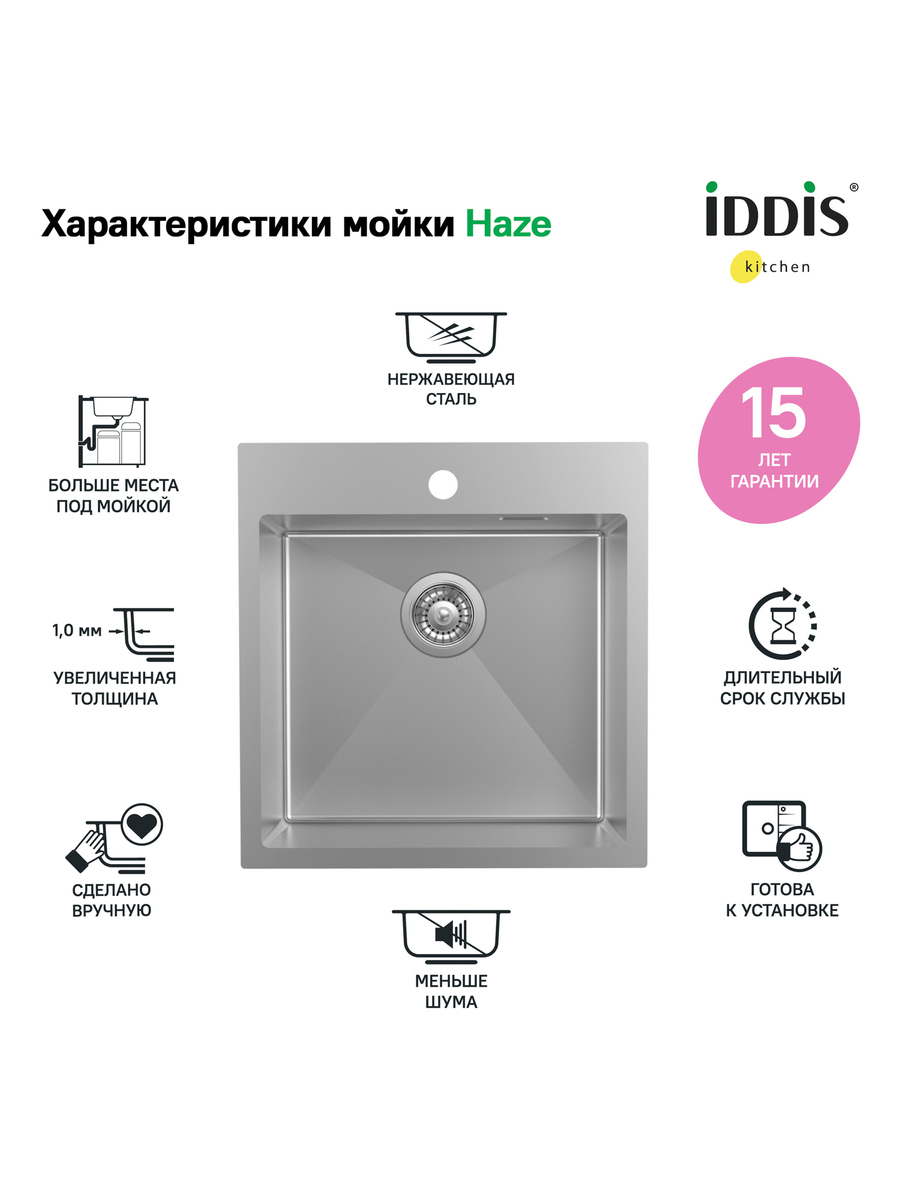 Мойка кухонная из нержавеющей стали Haze, сатин/ шелк, 490*510, IDDIS, HAZ49S0i77