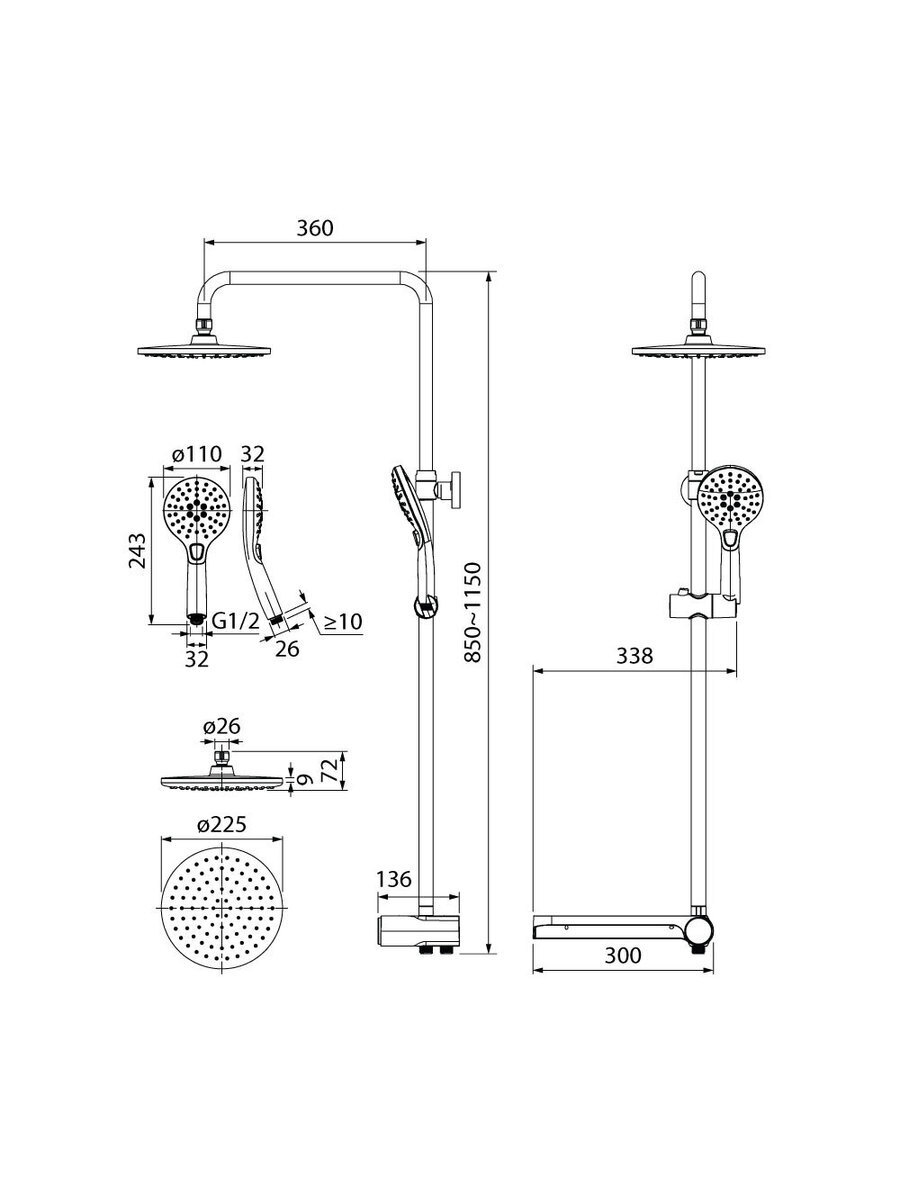 Душевой комплект IDDIS Ray (Iddis) Ray, с верхней лейкой серый металлик