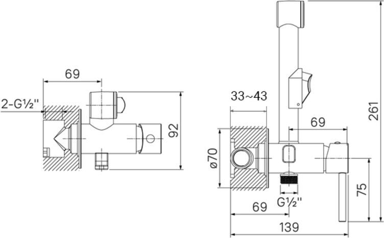 Встраиваемый смеситель Iddis, с гигиеническим душем, 003BLR0i08, матовый черный