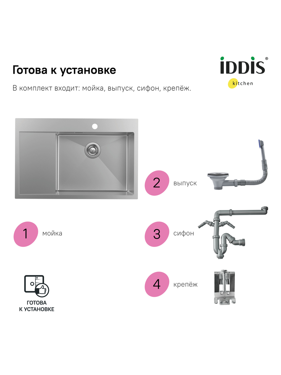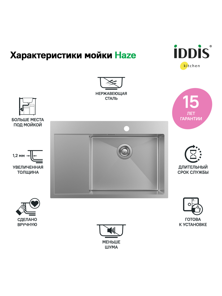 Мойка кухонная из нержавеющей стали Haze, сатин/ шелк, 780*510, IDDIS, HAZ78SRi77