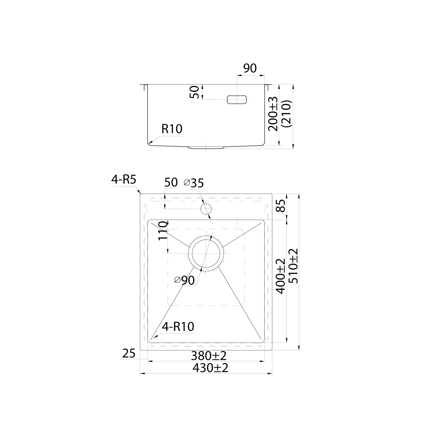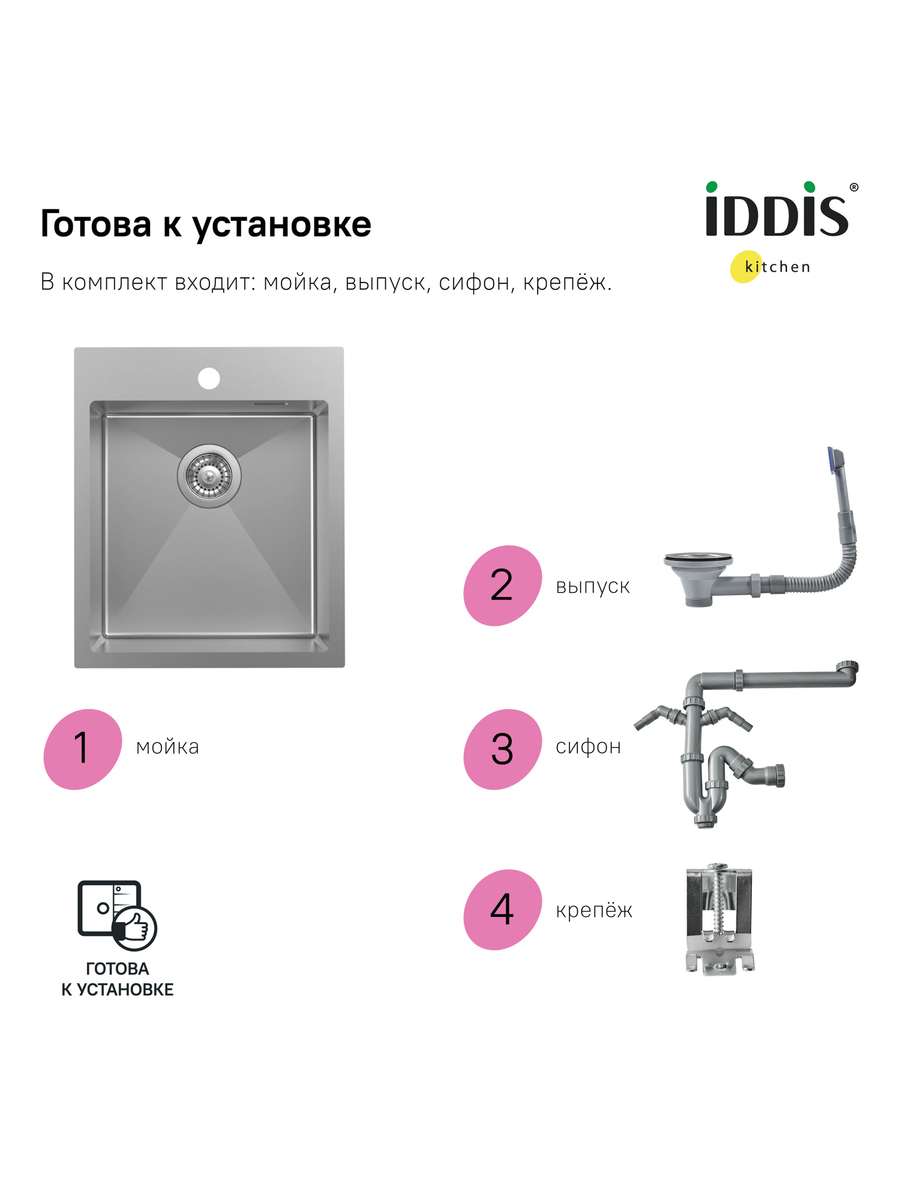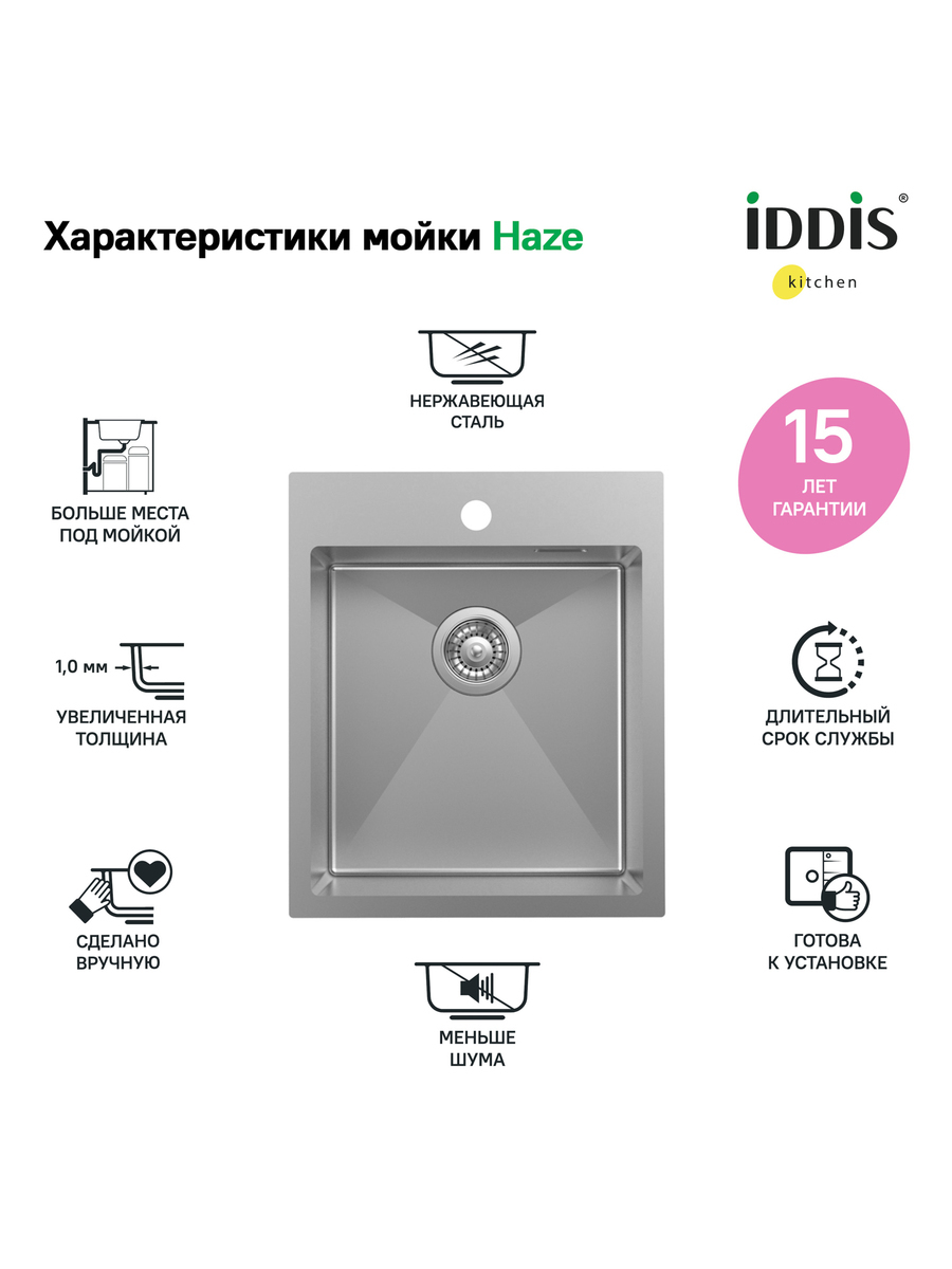 Мойка кухонная из нержавеющей стали Haze, сатин/ шелк, 430*510, IDDIS, HAZ43S0i77