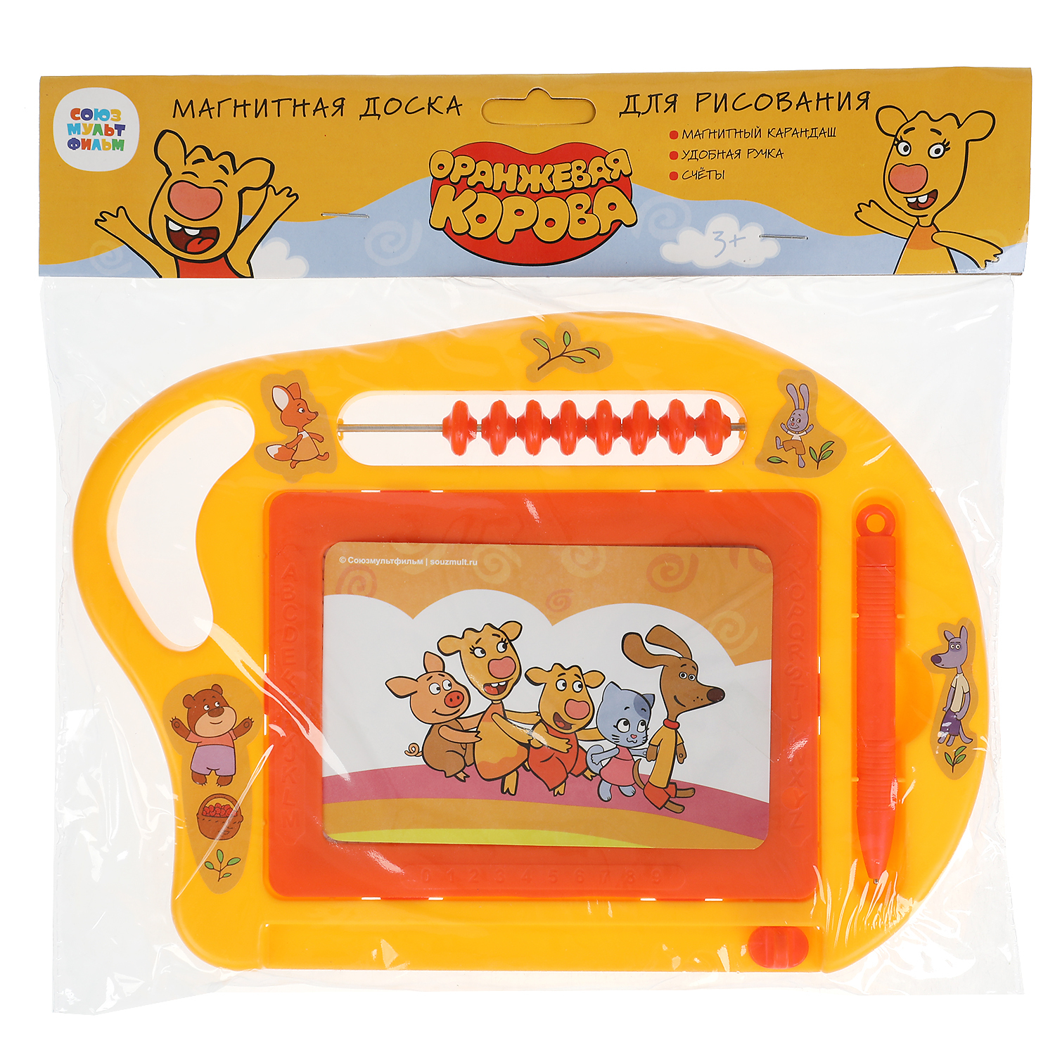 Доска для рисования Играем вместе Оранжевая корова магнитная, счеты