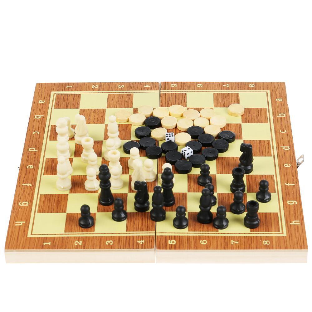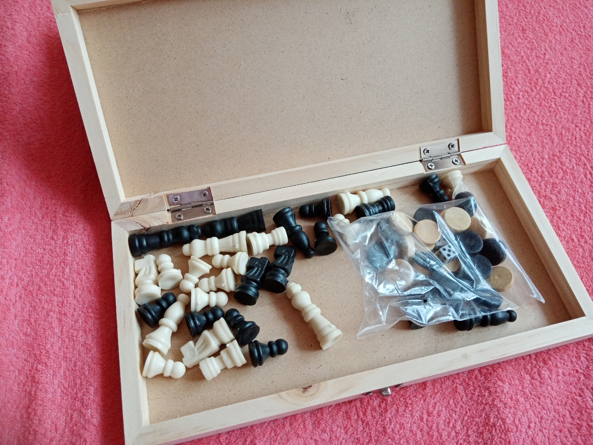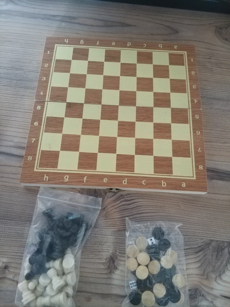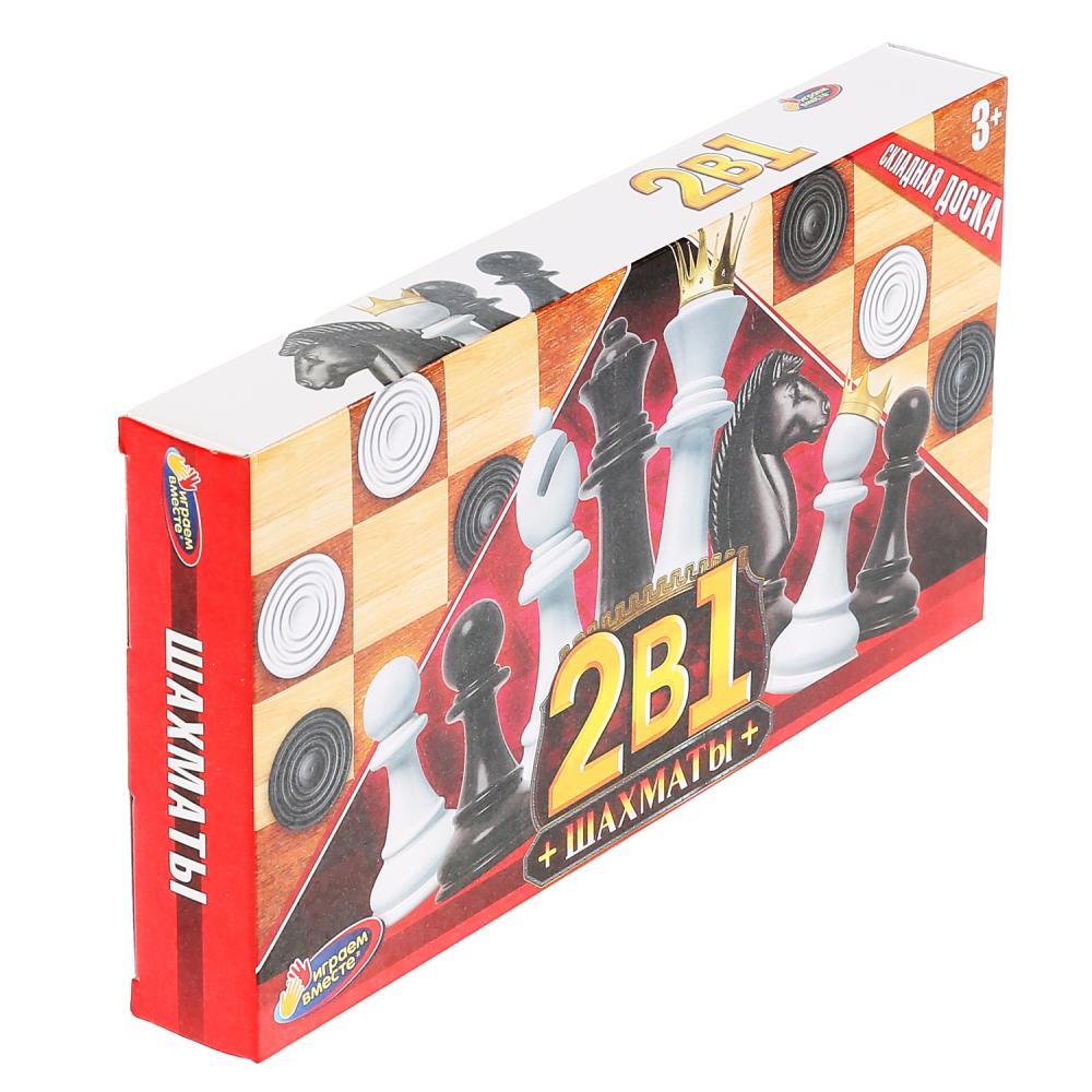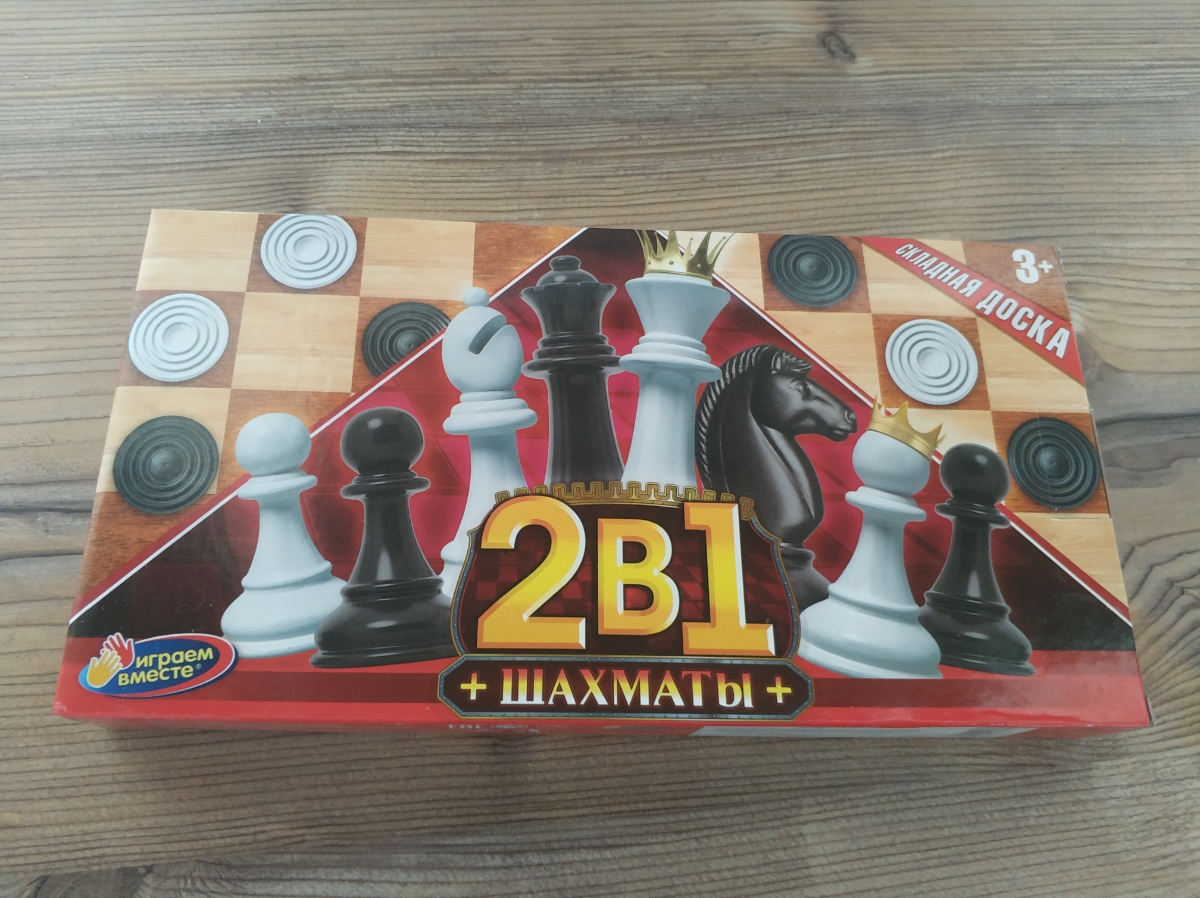Шахматы деревянные с пластиковыми фигурами, 2 в 1 (шахматы+шашки)