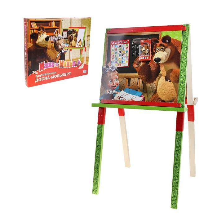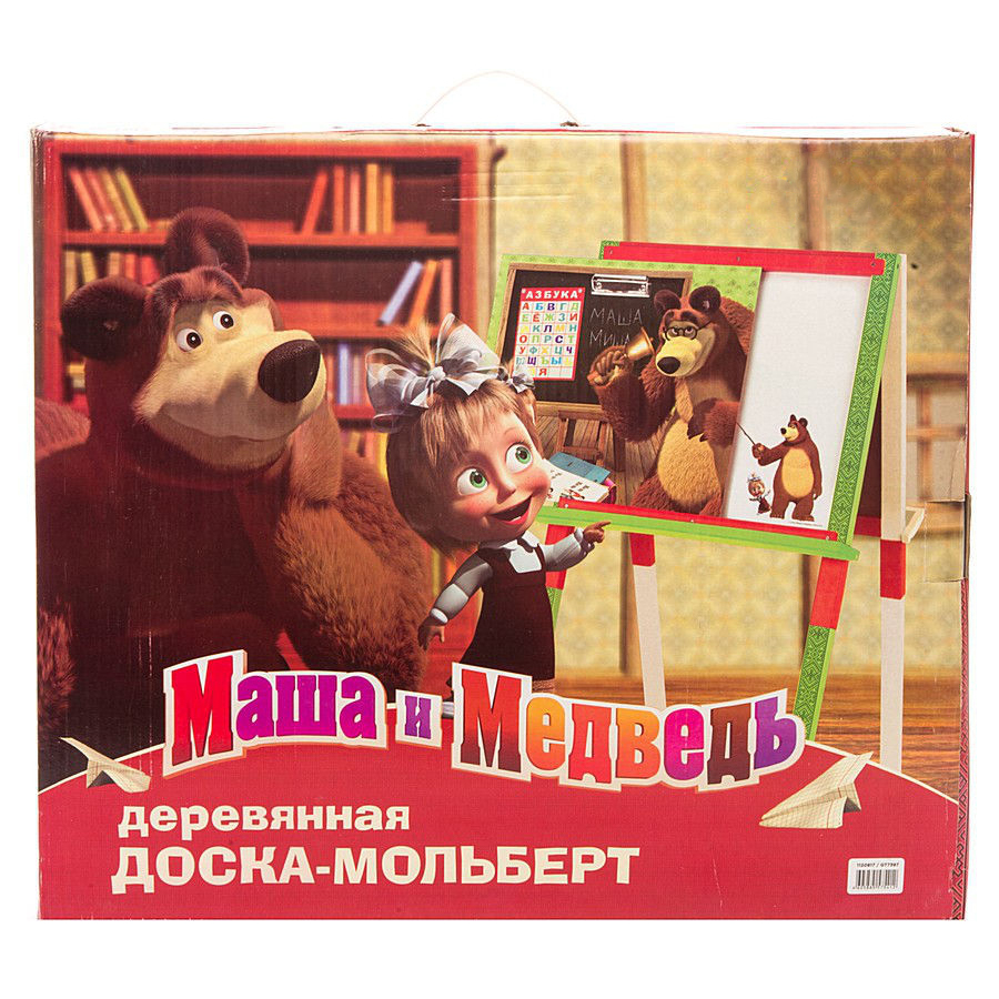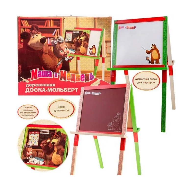 Доска деревянная мольберт напольная, грифельная, Маша и Медведь