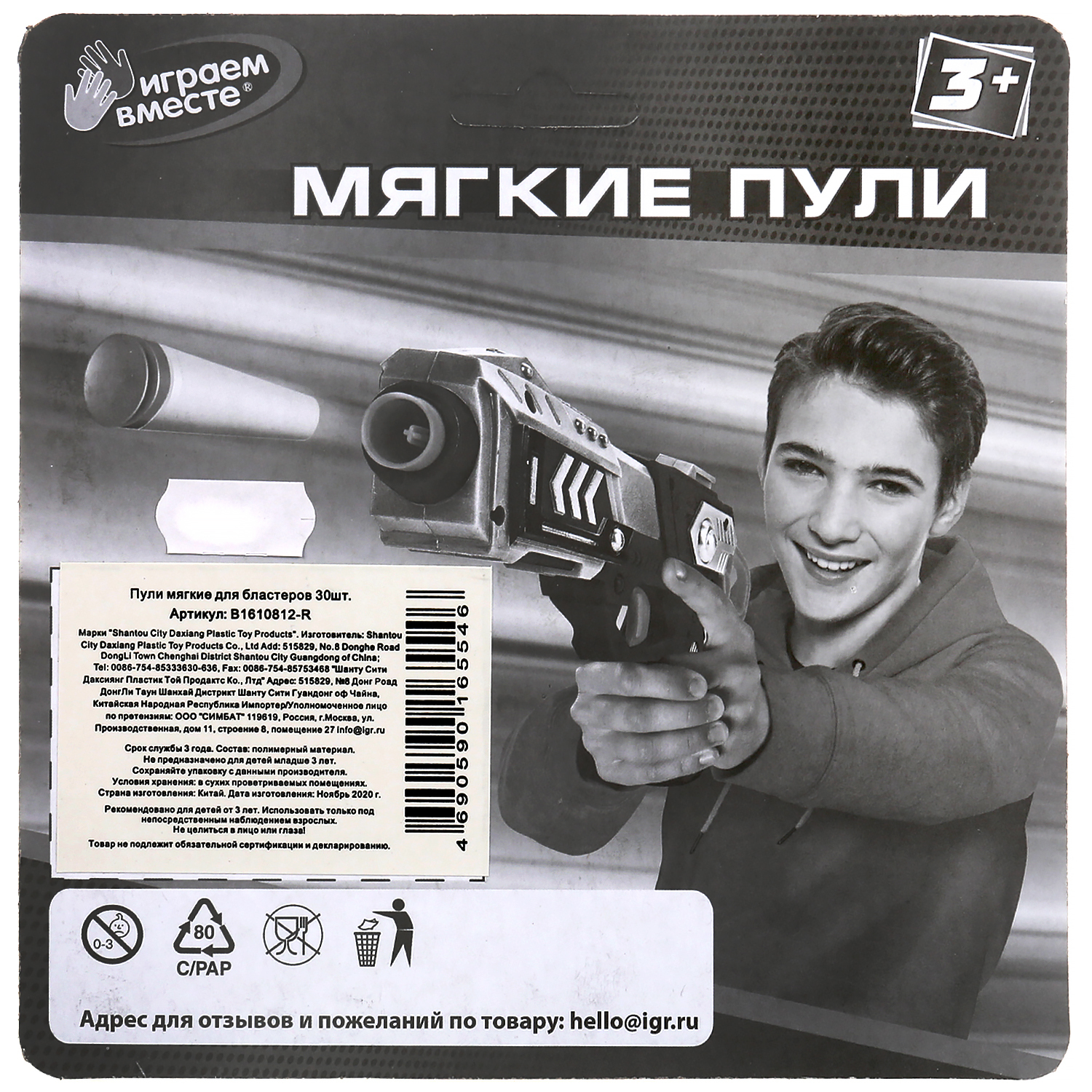 Набор из 30-и мягких пуль для бластеров "Играем Вместе" на картоне