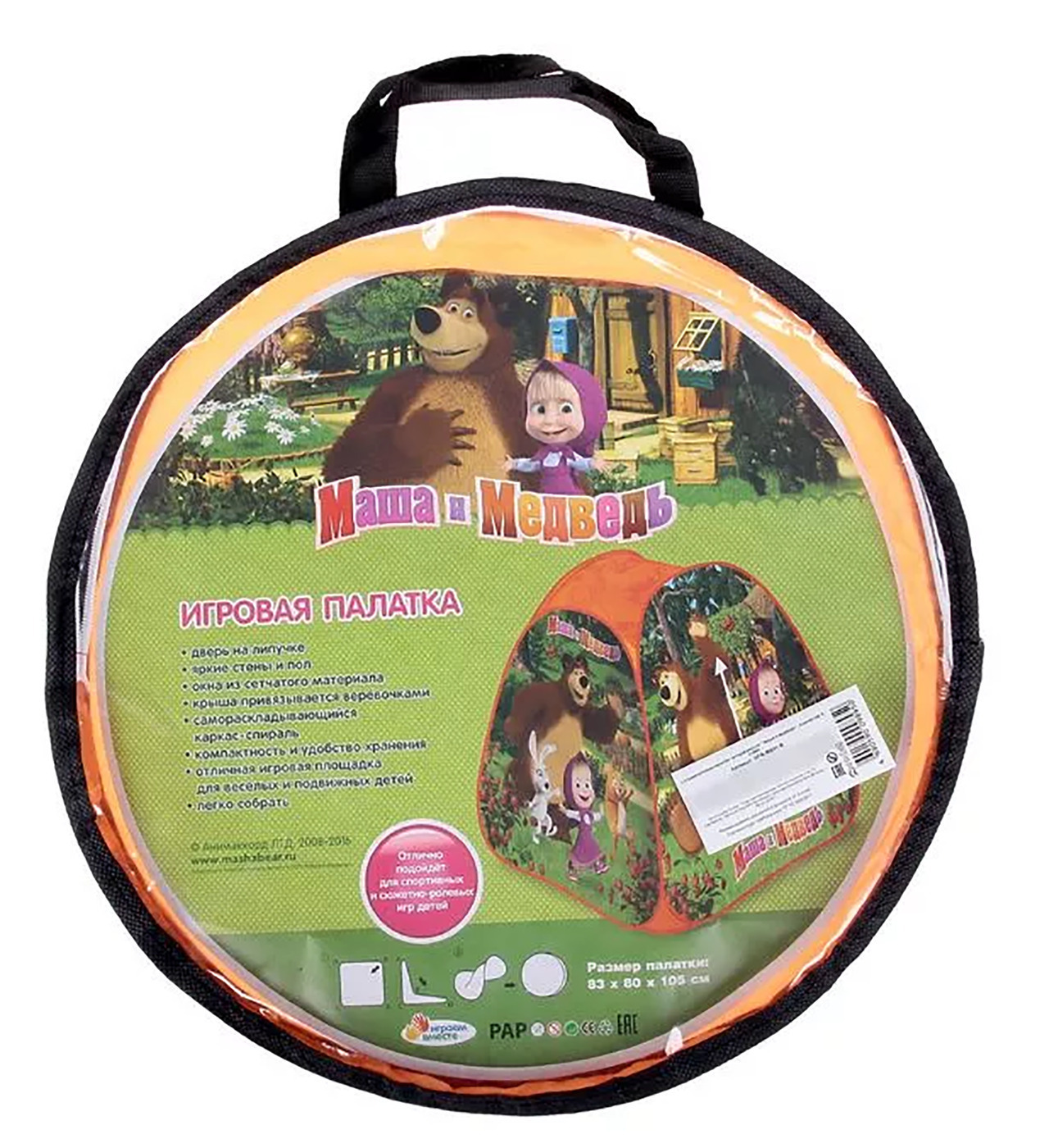 Палатка детская игровая "Маша и Медведь" 81х91х81 см Играем вместе