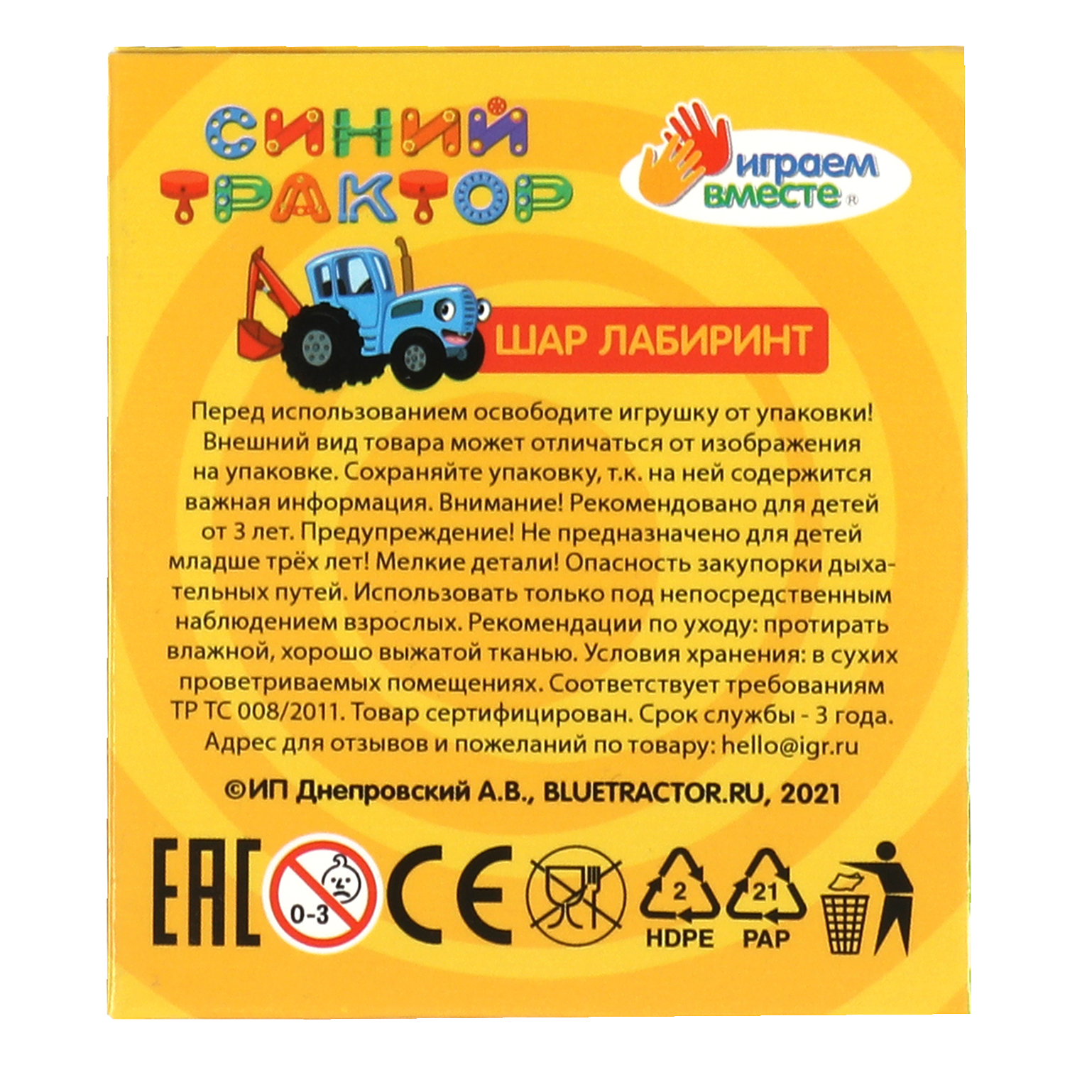 Логическая игра Играем вместе Синий трактор шар-лабиринт