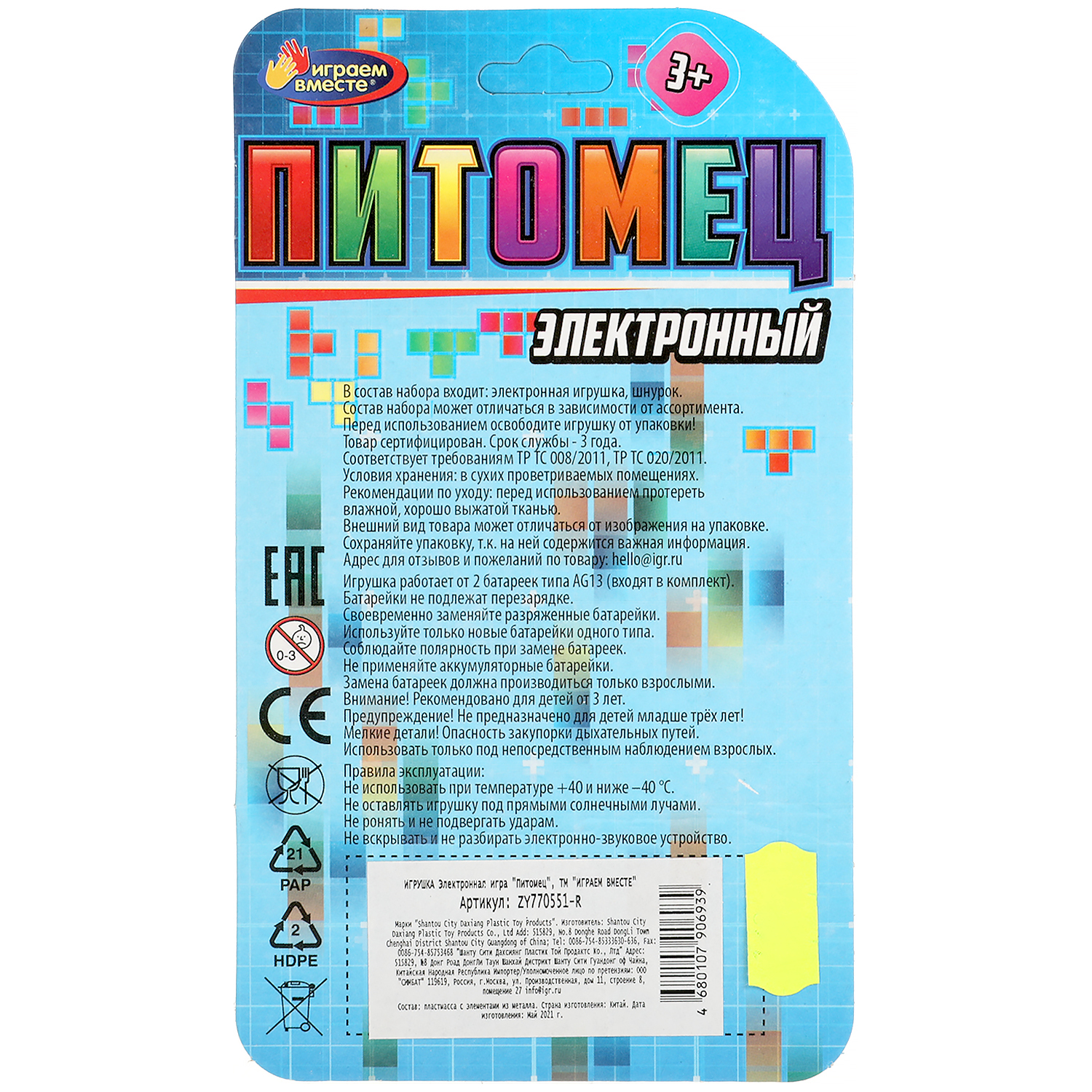Электронная логическая игра Играем вместе Питомец, 6 х 8 х 2 см