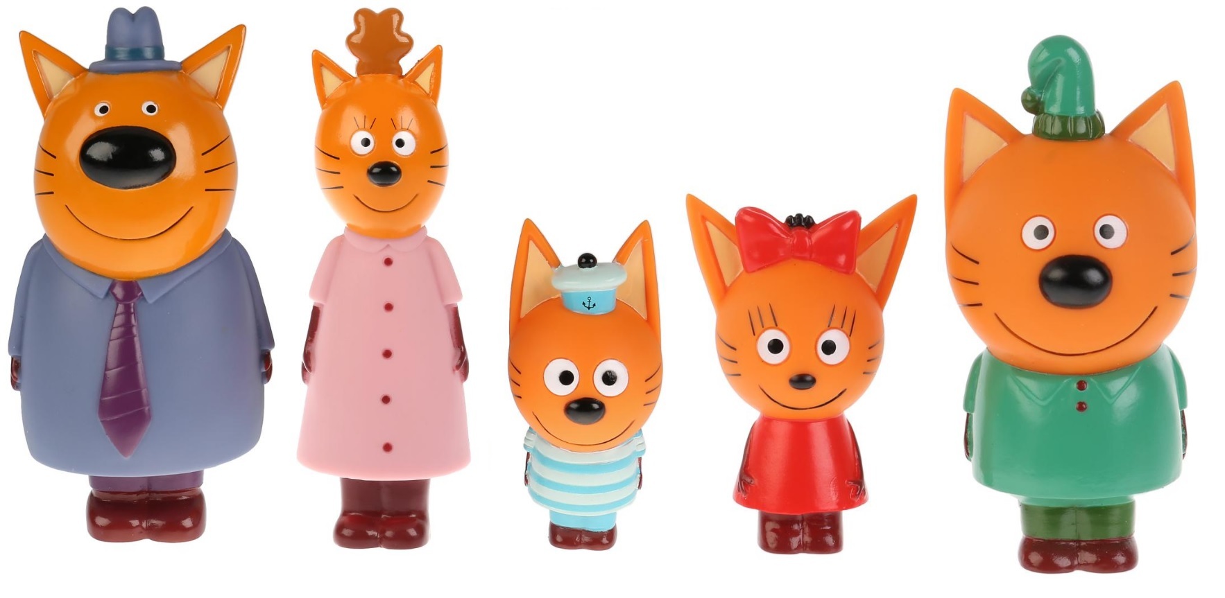 Набор игрушек для купания Три кота: Папа кот, Мама кошка, Карамелька, Компот и Коржик