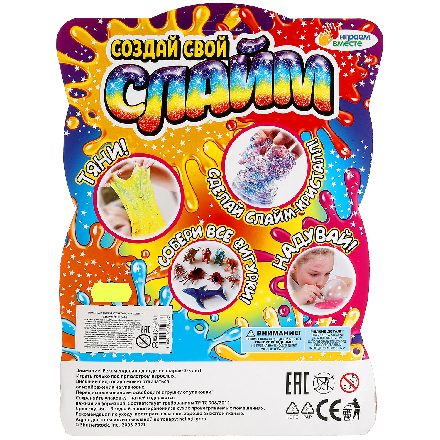 Набор опыты Играем вместе Сделай слайм с игрушкой