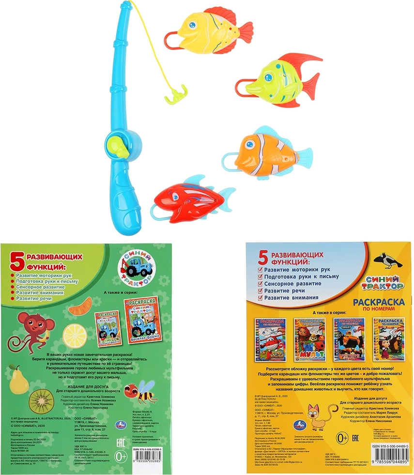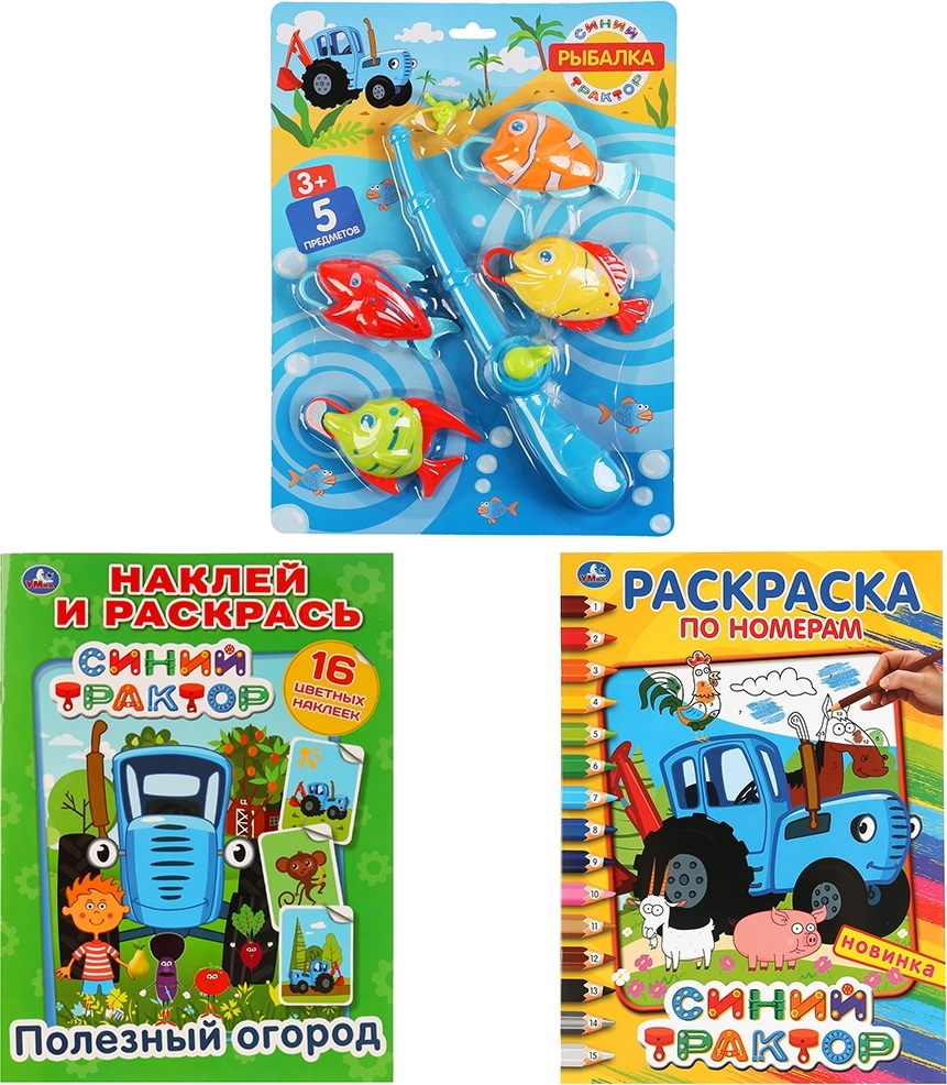 Набор Играем вместе Синий трактор, 2 раскраски и рыбалка
