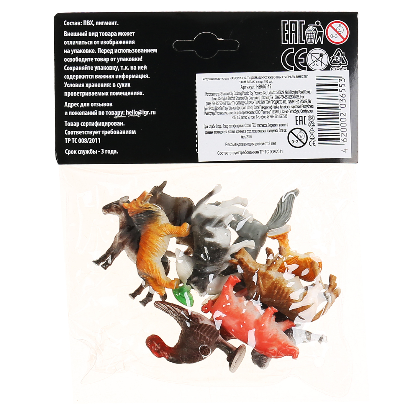 Набор пластизолевых игрушек "Домашние животные" Играем вместе, 12 шт, 5 см
