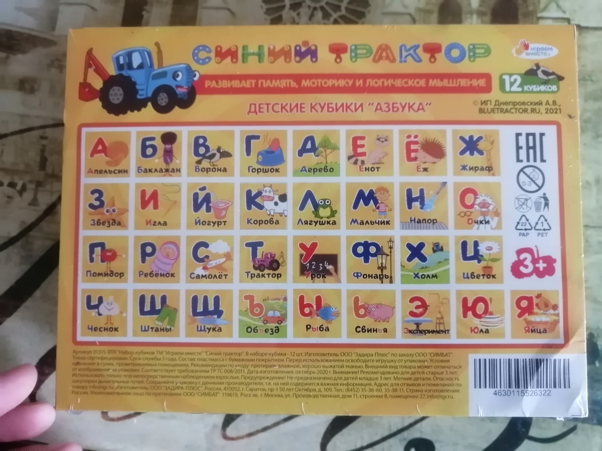 Набор из 12-ти кубиков "Синий трактор. Азбука" Играем вместе