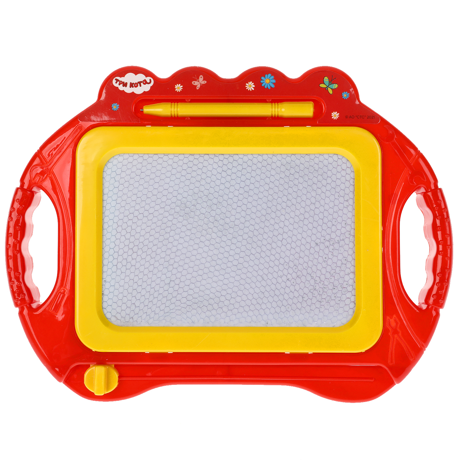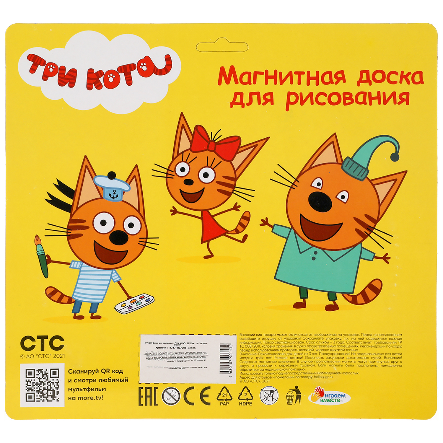 Доска для рисования Играем вместе Три кота магнитная, 20х15см, чёрно-белое поле