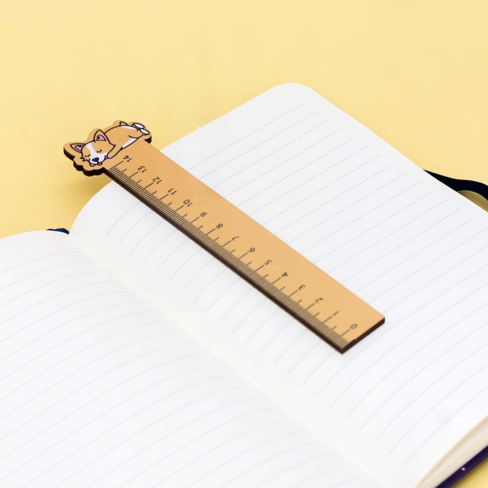 Линейка / Линейка деревянная / Линейка из эко материалов / Линейка канцелярская Sleeping Corgi