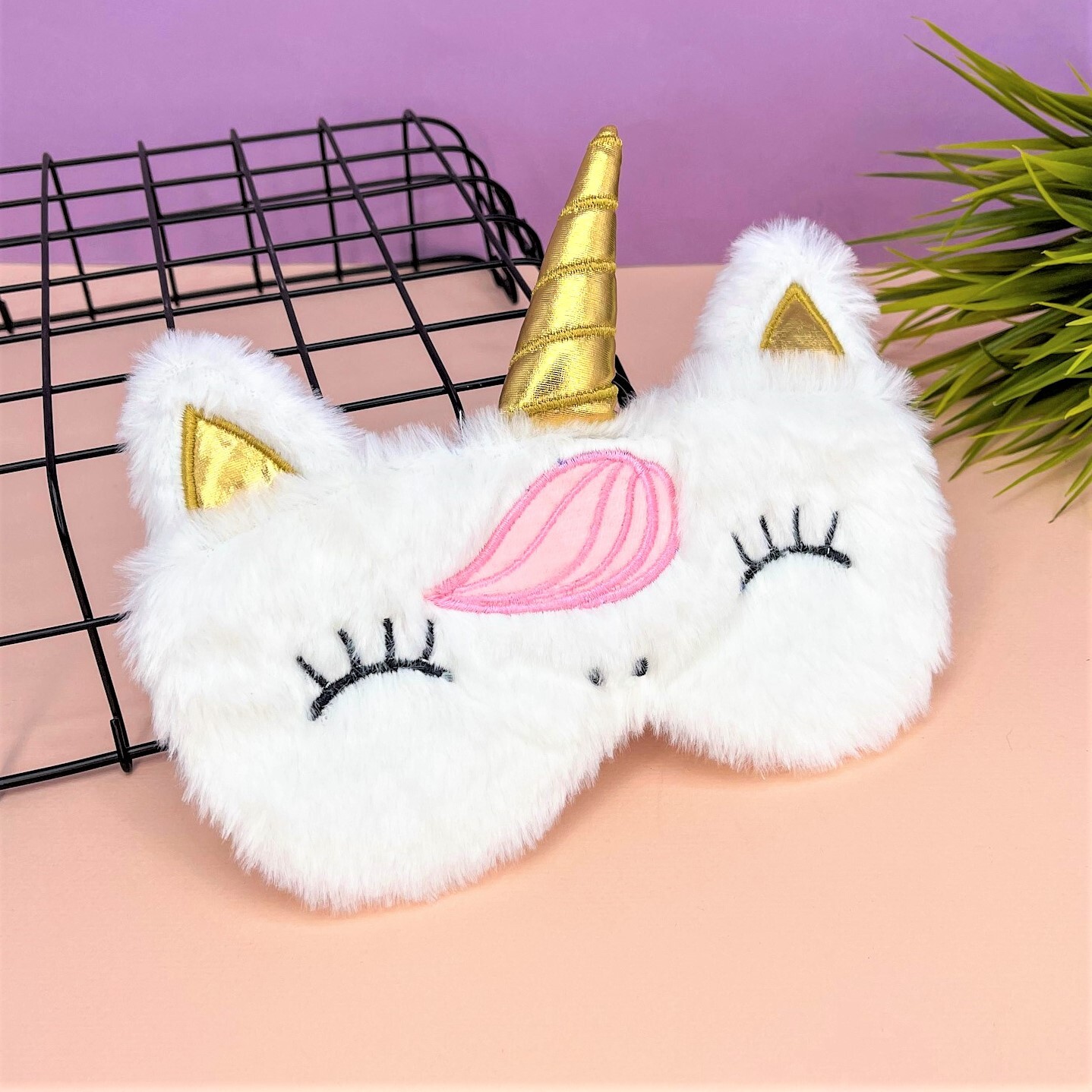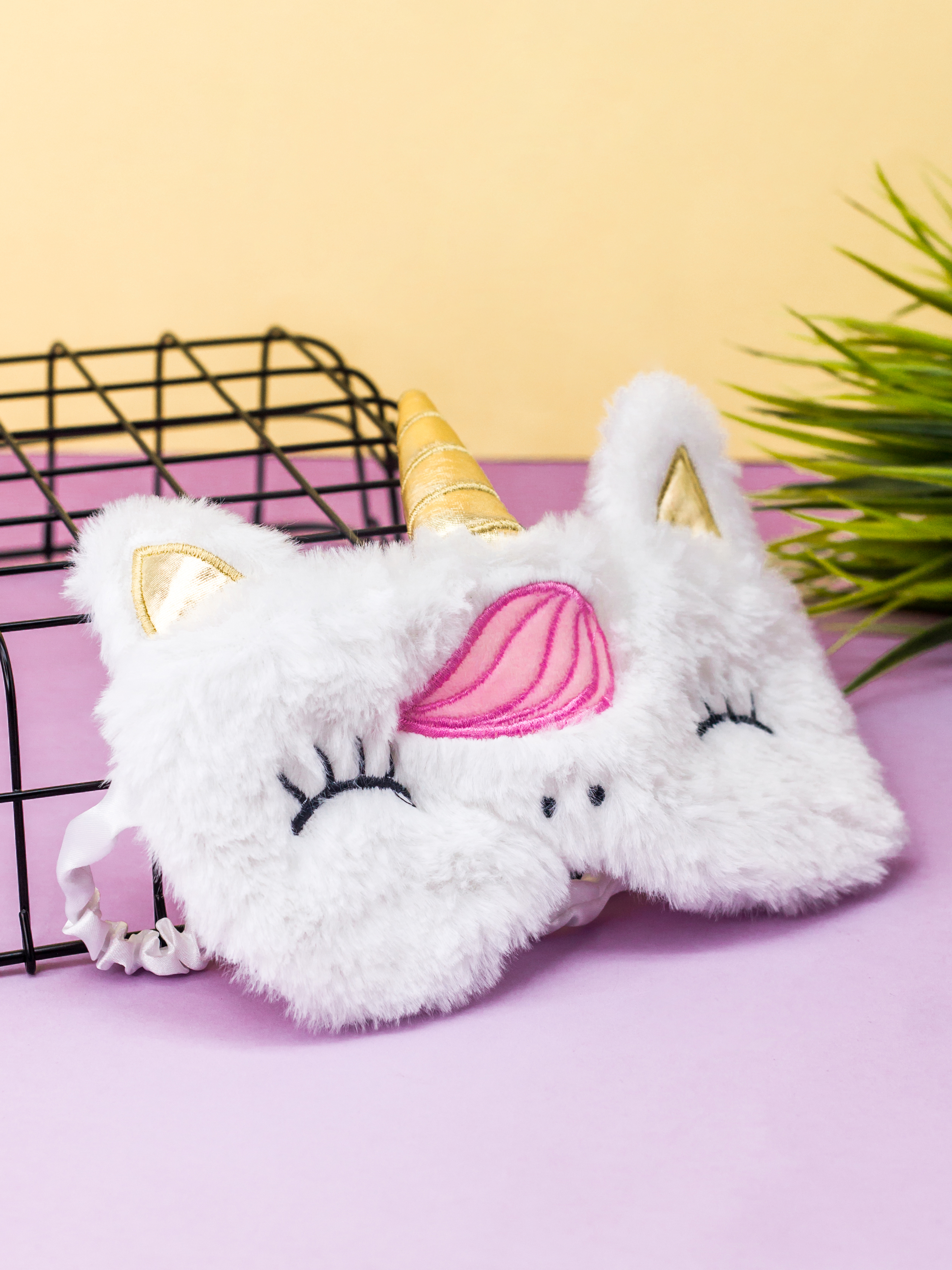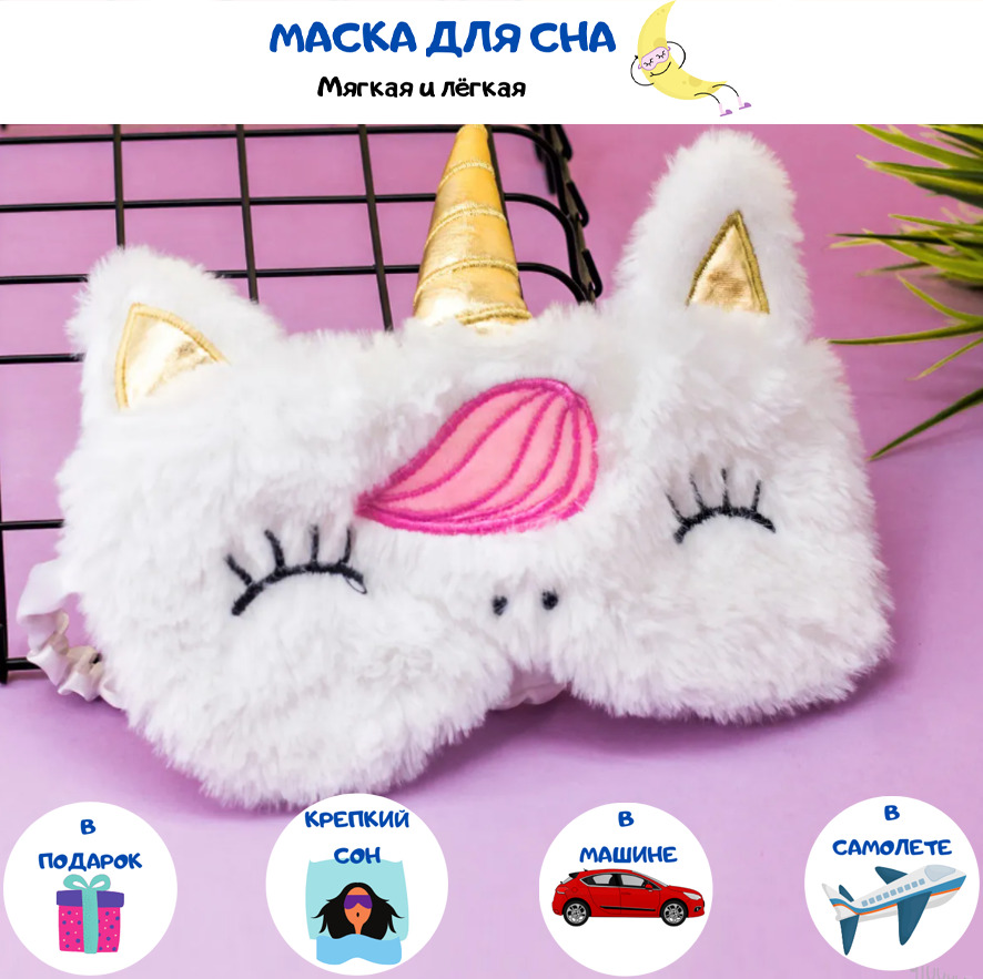 Маска для сна / Маска на глаза / Маска для сна детская / Маска для сна взрослая "White unicorn, golden horn"
