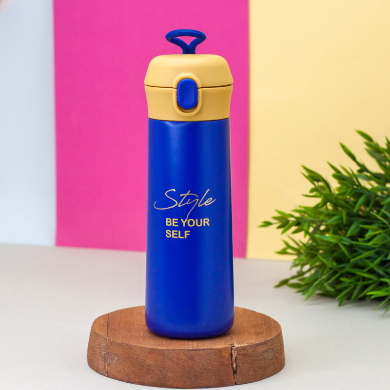 Термос Вакуумный, С помпой, Непроливайка ilikegift "классический синий", 0.4 л
