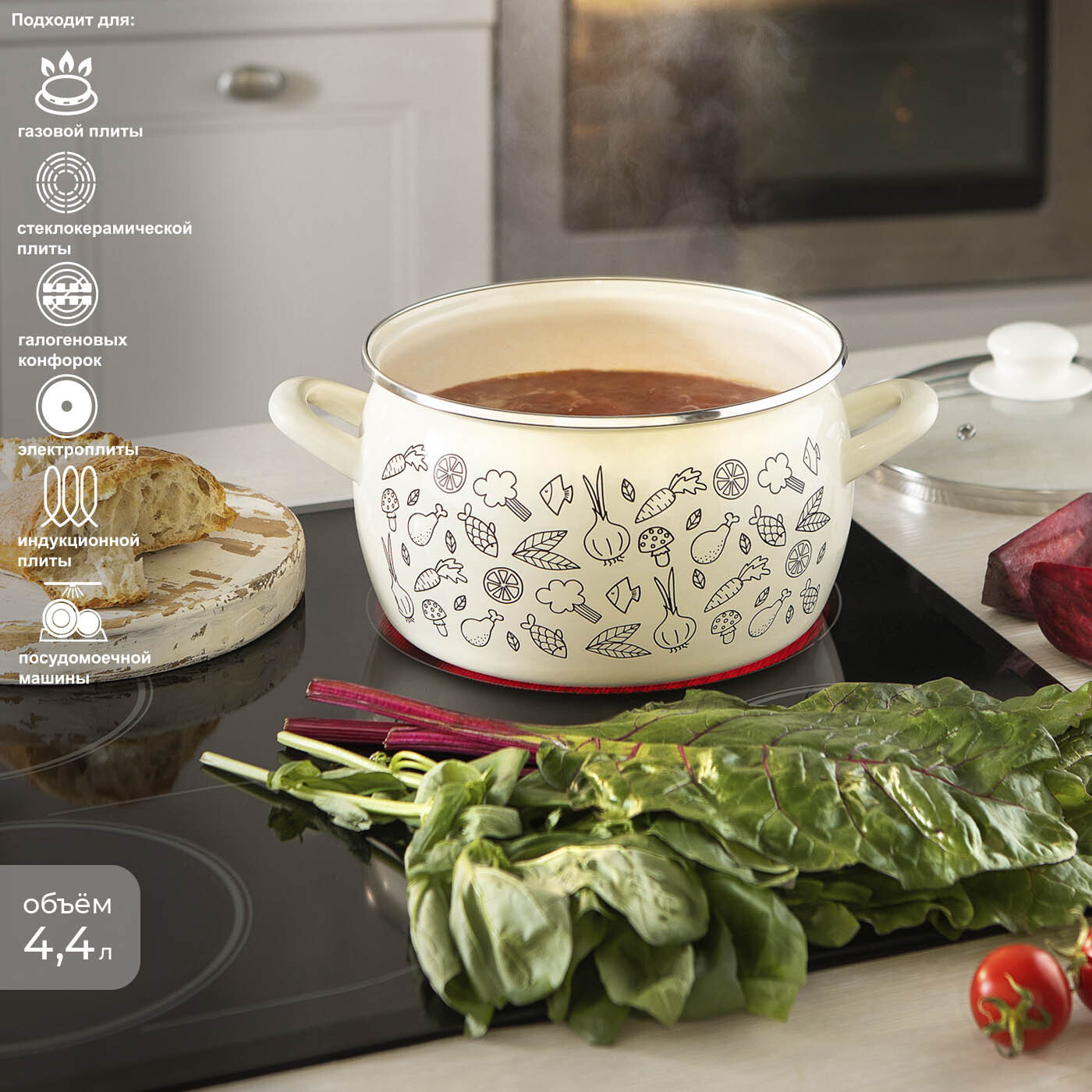 Кастрюля inhouse "ELMA", Эмаль, 4,4 л