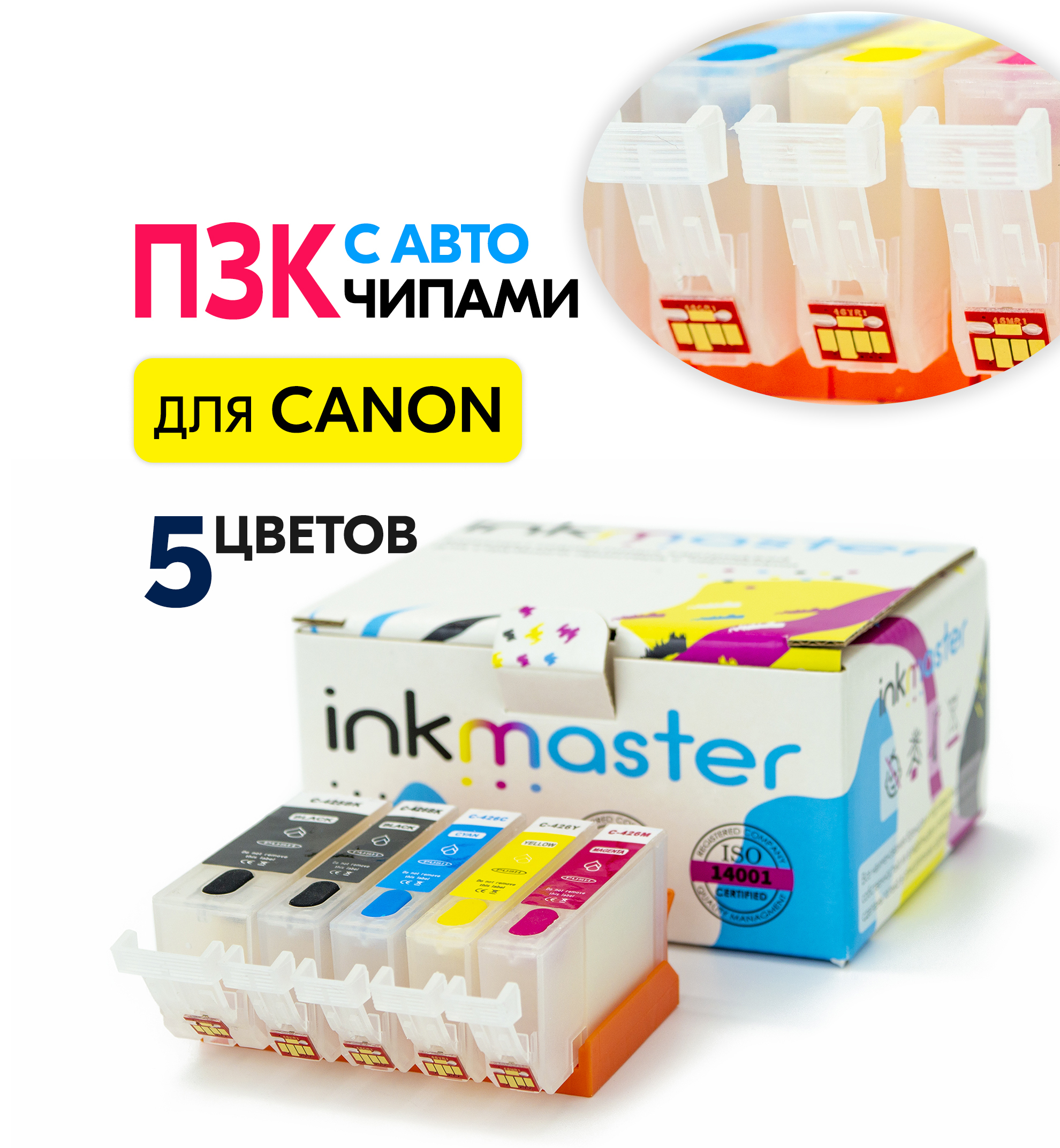 Перезаправляемые картриджи ПЗК PGI-450/CLI-451 XL для Canon PIXMA iP7240, iP8740, iX6840, MG5440, MG5540, MG5640, MG6340, MG6440, MG6640, MG7140, MG7540, MX924 5 цветов с чернилами