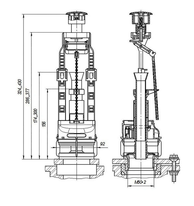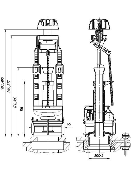 ИнкоЭр Универсальный сливной клапан, штоковый механизм слива с функцией "Стоп поток"
