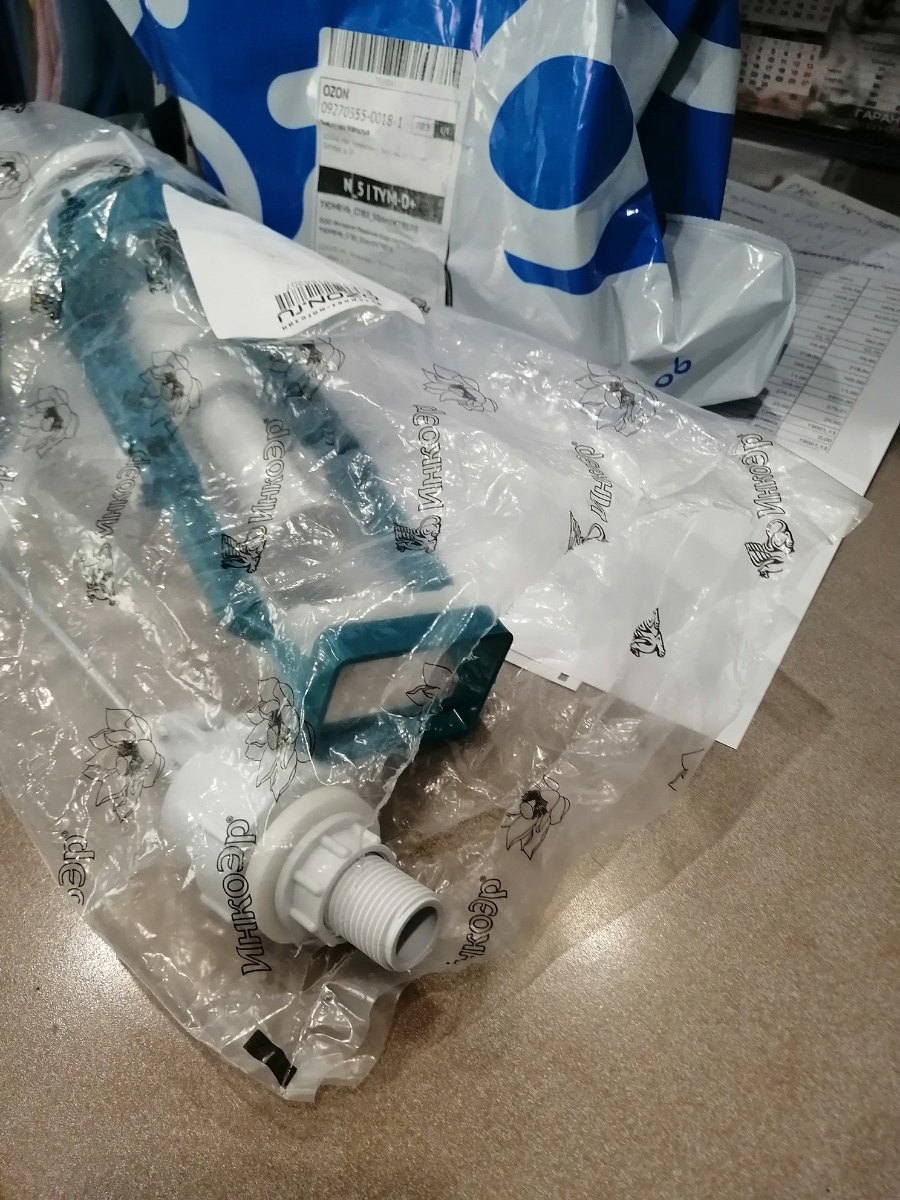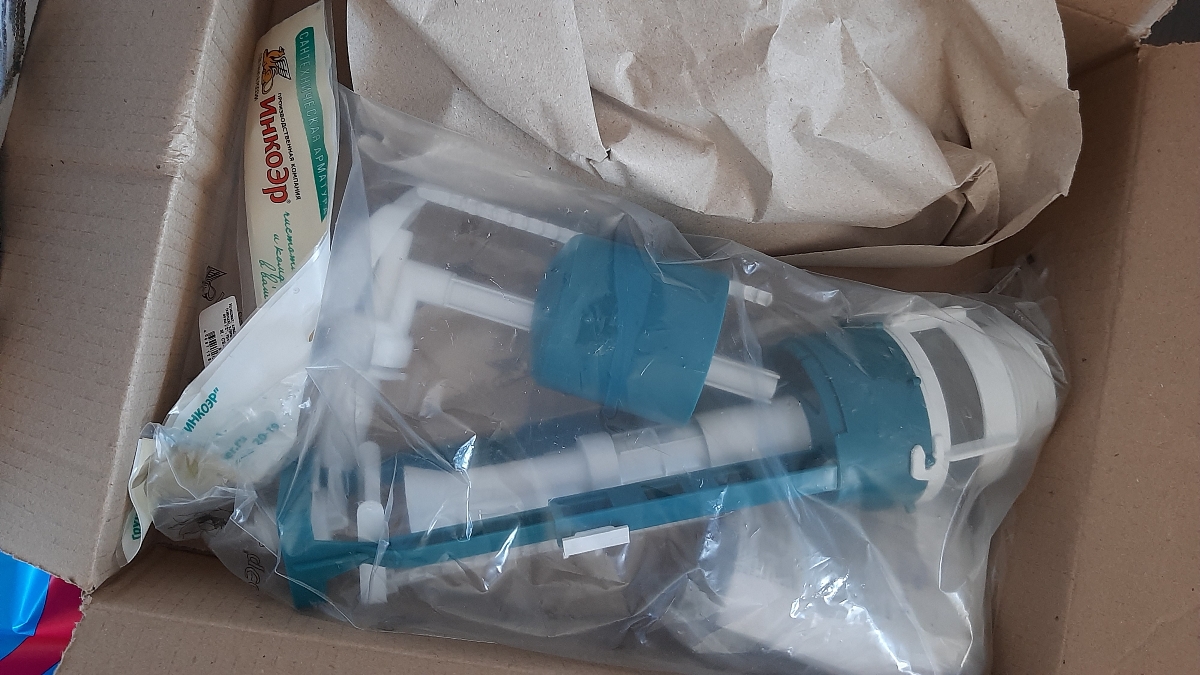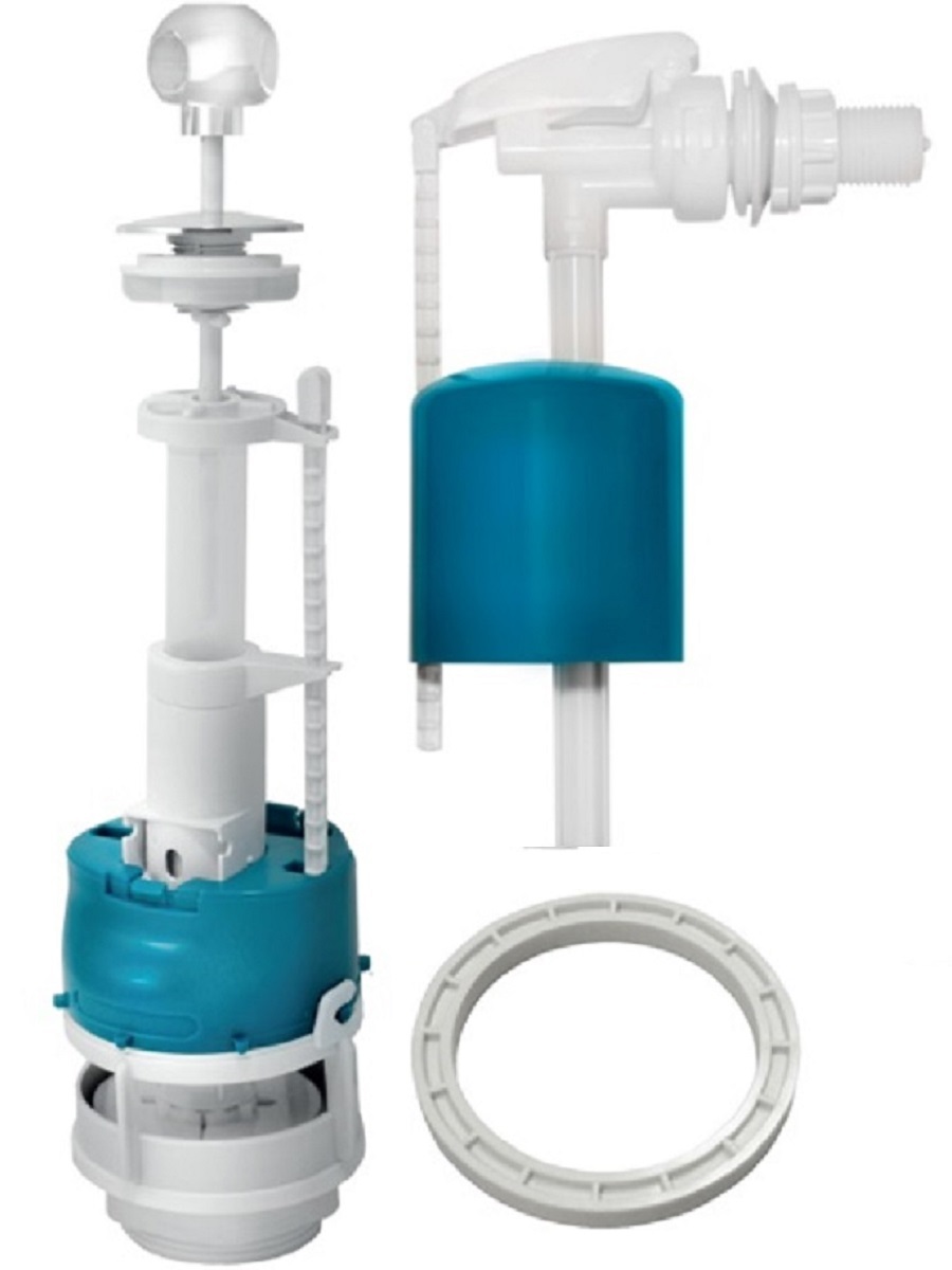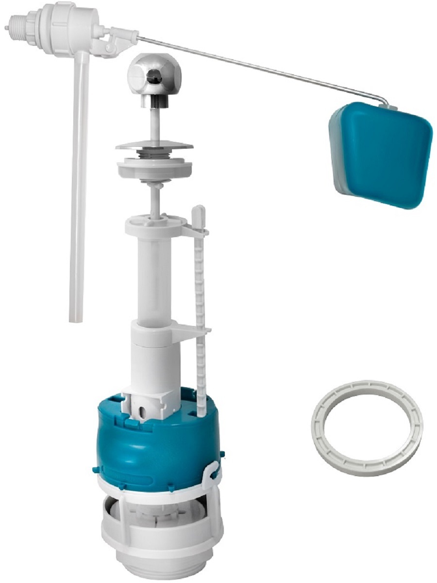 Арматура для бачка универсальная (пластиковый шток, боковой подвод, ручка-шарик белая) ИН