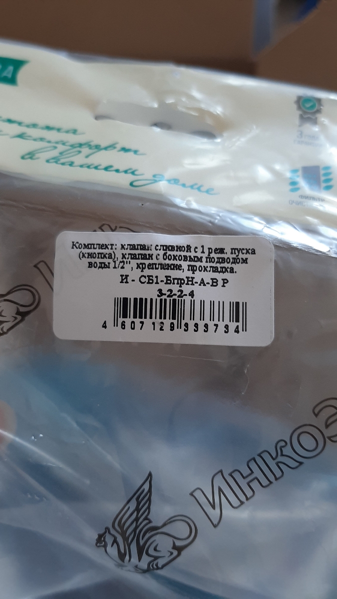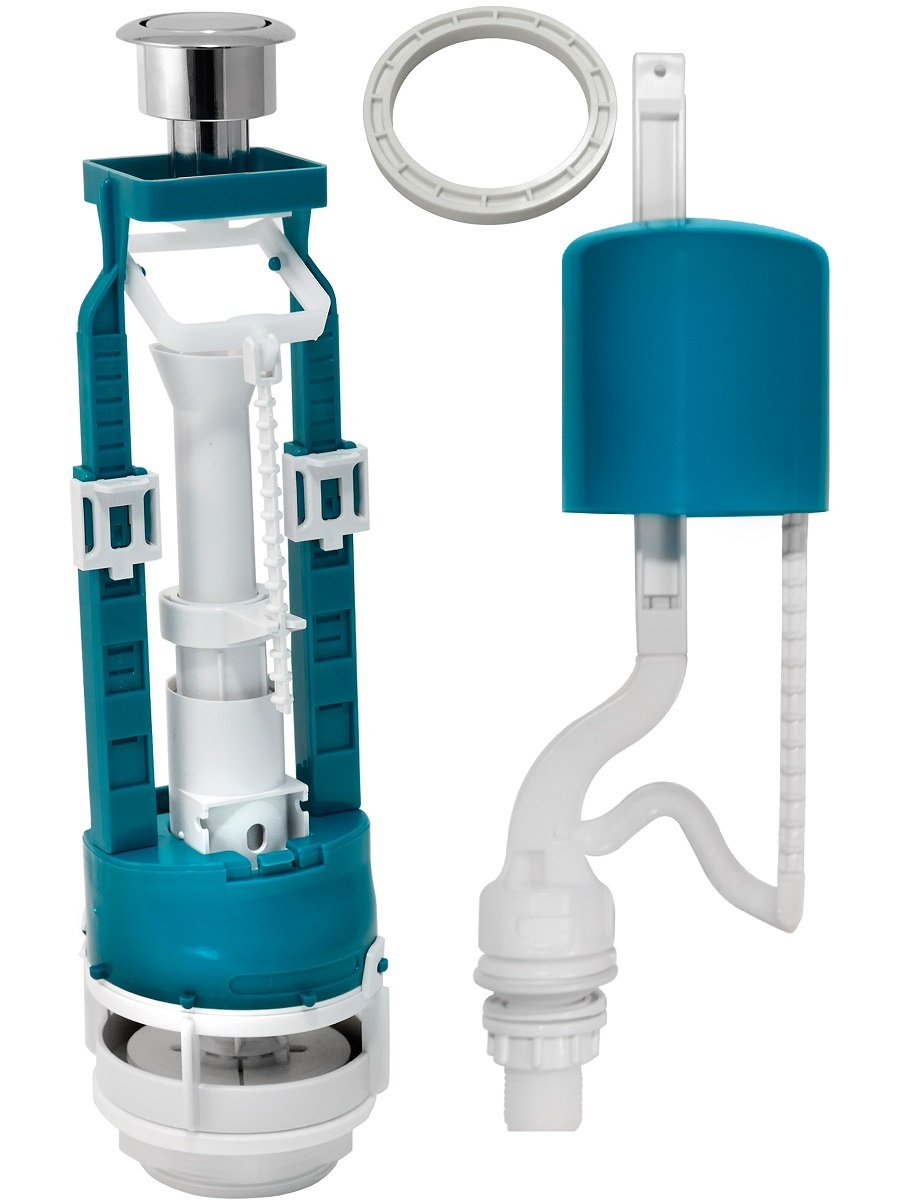 Арматура для бачка кнопочная (1 режим, нижний подвод, металлизированная кнопка) ИН