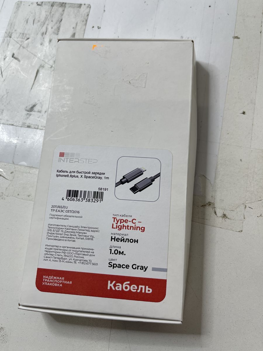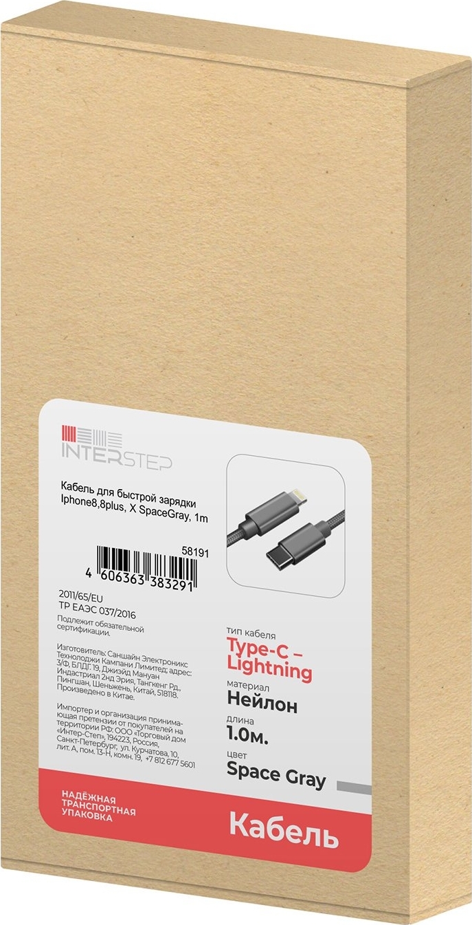 Кабель Interstep 58191 USB Type-C - Lightning, 1м, темно-серый. Уцененный товар