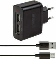 Сетевое зарядное устройство Interstep 2xUSB + кабель microUSB 2000мАч (черный)