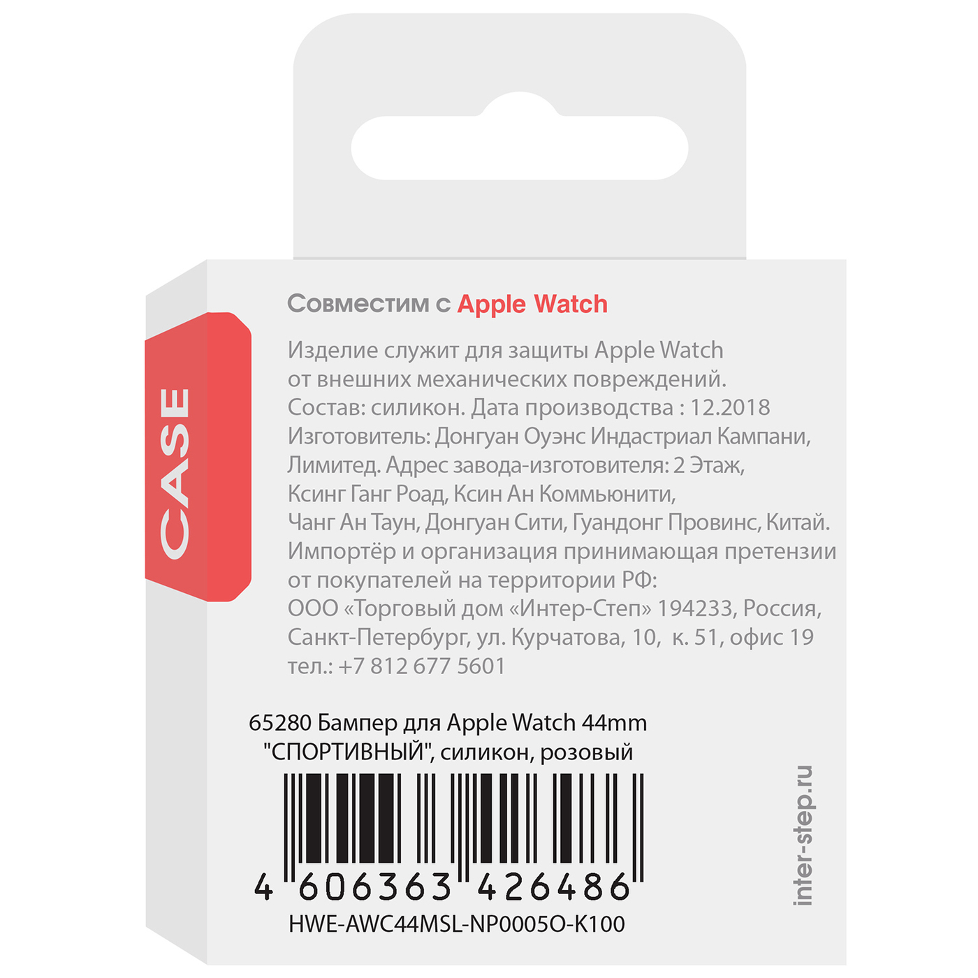 Бампер силиконовый для Apple Watch 44мм, розовый, InterStep