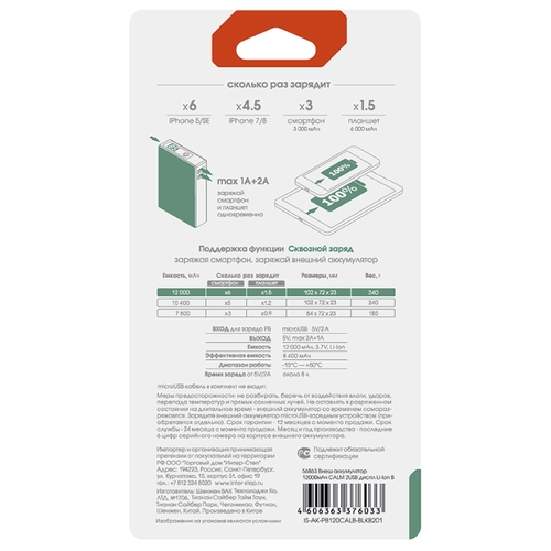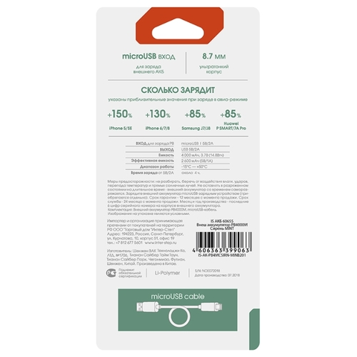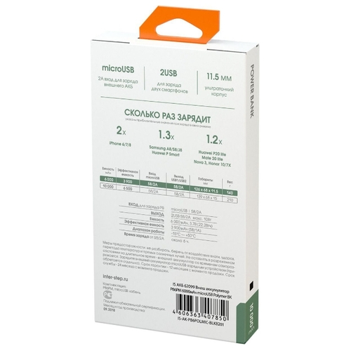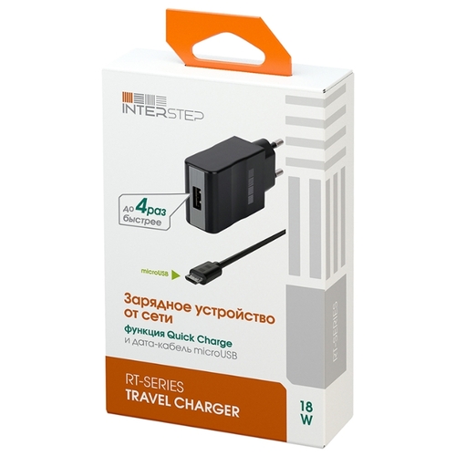 Сетевая зарядка INTERSTEP IS-TC-MCUS1QCRT-000B201 + micro USB