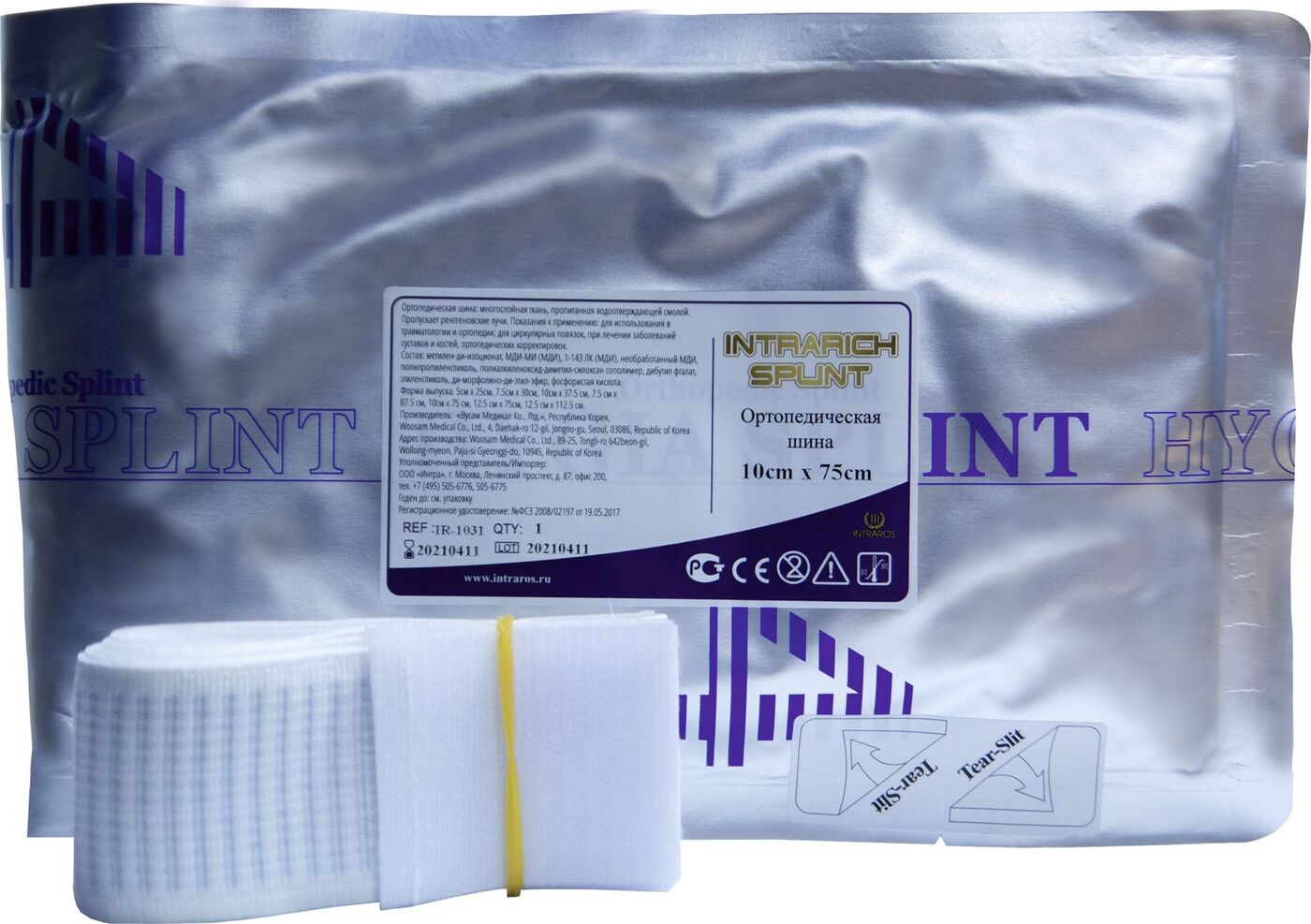 Ортопедическая полимерная шина Intrarich SPLINT IR-1031, c креплениями, 10 см х 75 см